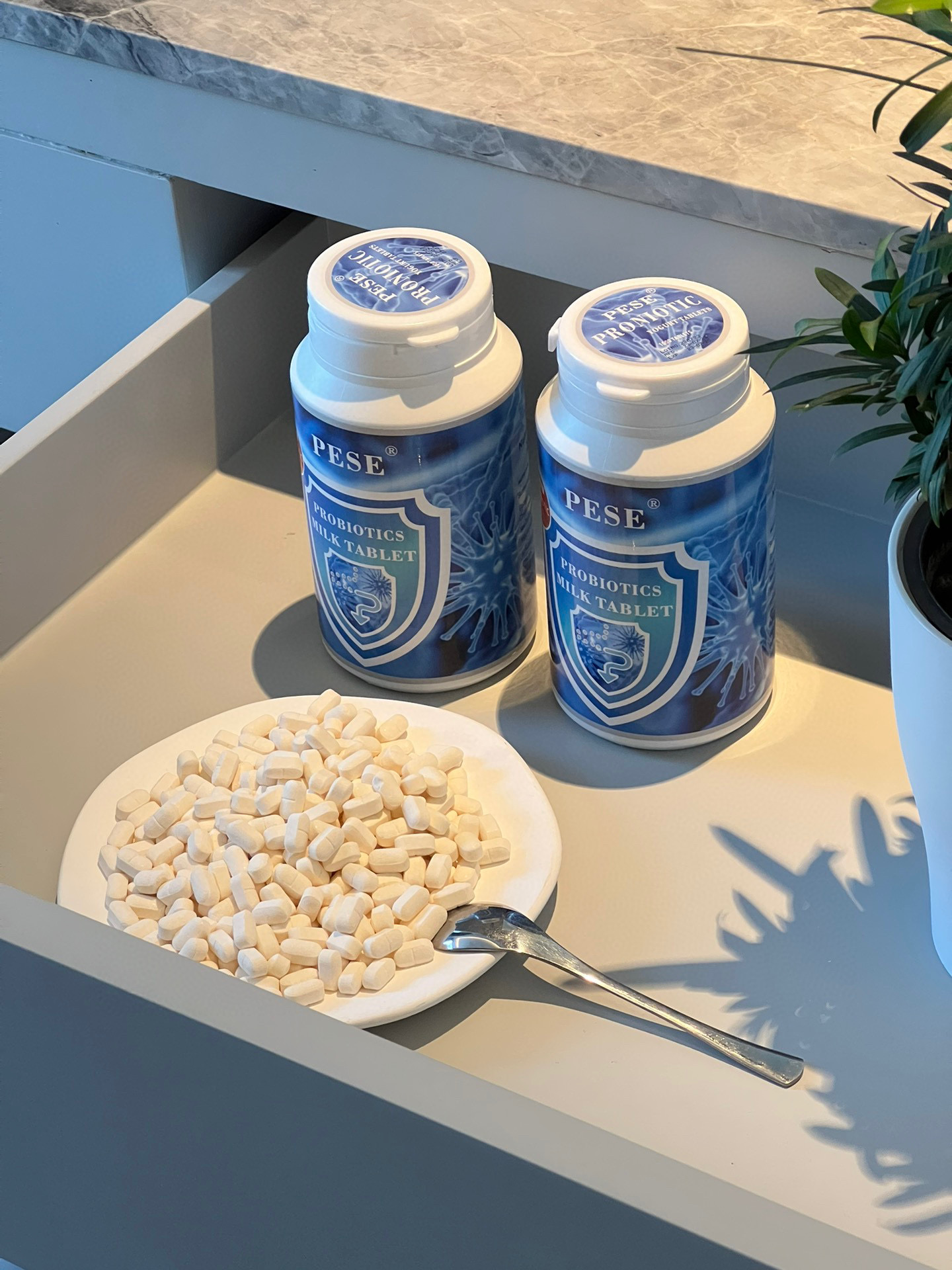【品名】泰国原装进口PESE益生菌咀嚼片 400g/瓶 【规格】400g/瓶 【产地】泰国 【保质期】2年 【发货包装】独立包装盒 【发货地】广东 【发货快递】中通 【不发货区域】新疆、西藏、港澳台 【发货时效】48-72小时,周末节假日顺延 |