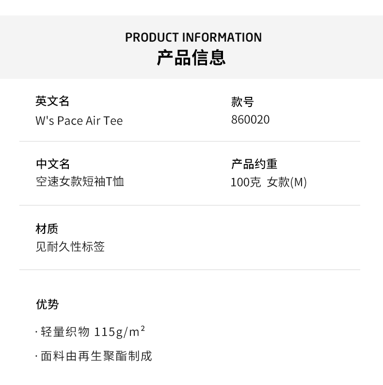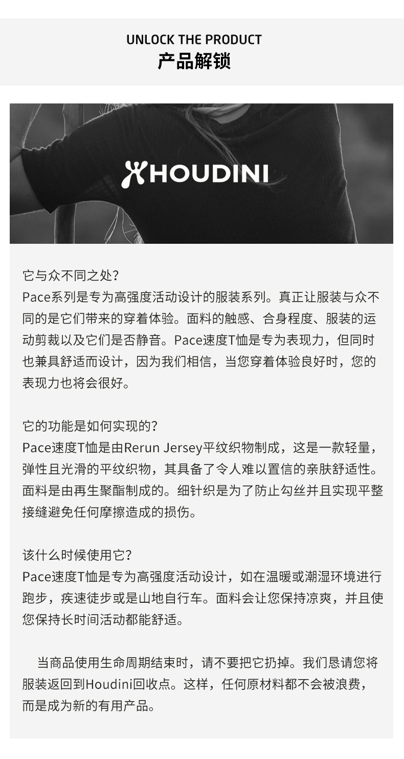HOUDINI胡丁尼 Pace Air Tee 空速 女户外吸湿速干跑步短袖T恤860020