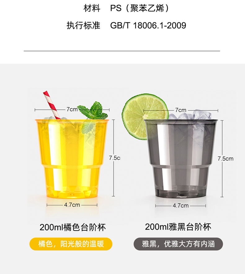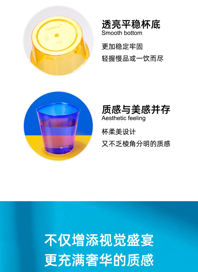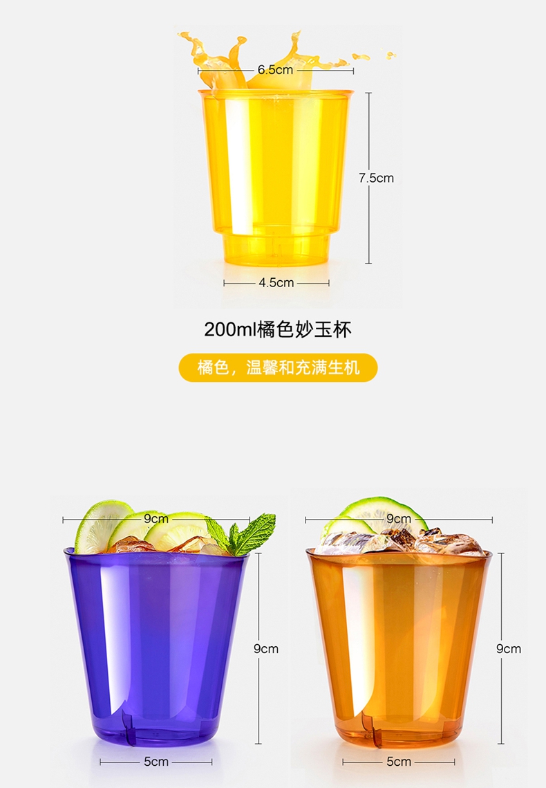 喇叭花200ml彩色航空杯ins风网红杯彩色招待饮水杯凹口杯一次性杯子PS硬塑料杯80个