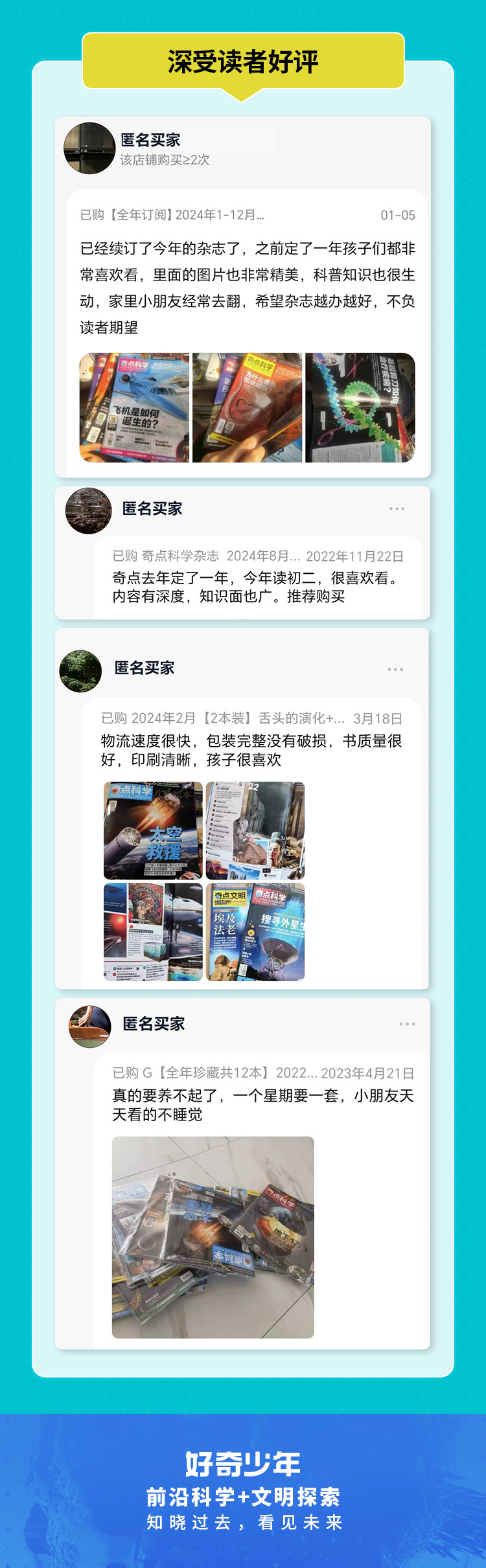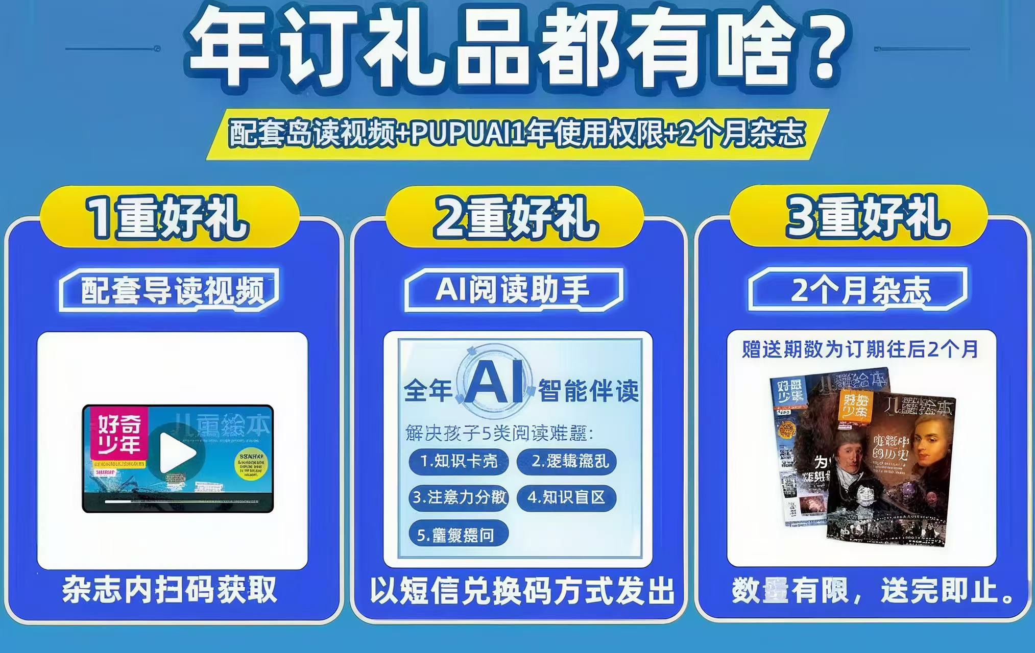 礼遇:2025年9月24日起,《好奇少年》2025年9月期开始每期获赠“小创客(青少年科技创新报)新刊一份”。赠品随每月杂志发出,活动送至2026年12月期。