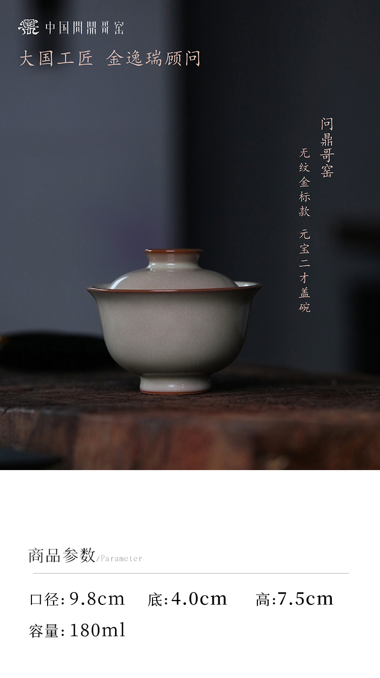 问鼎哥窑无纹金标款元宝二才盖碗
