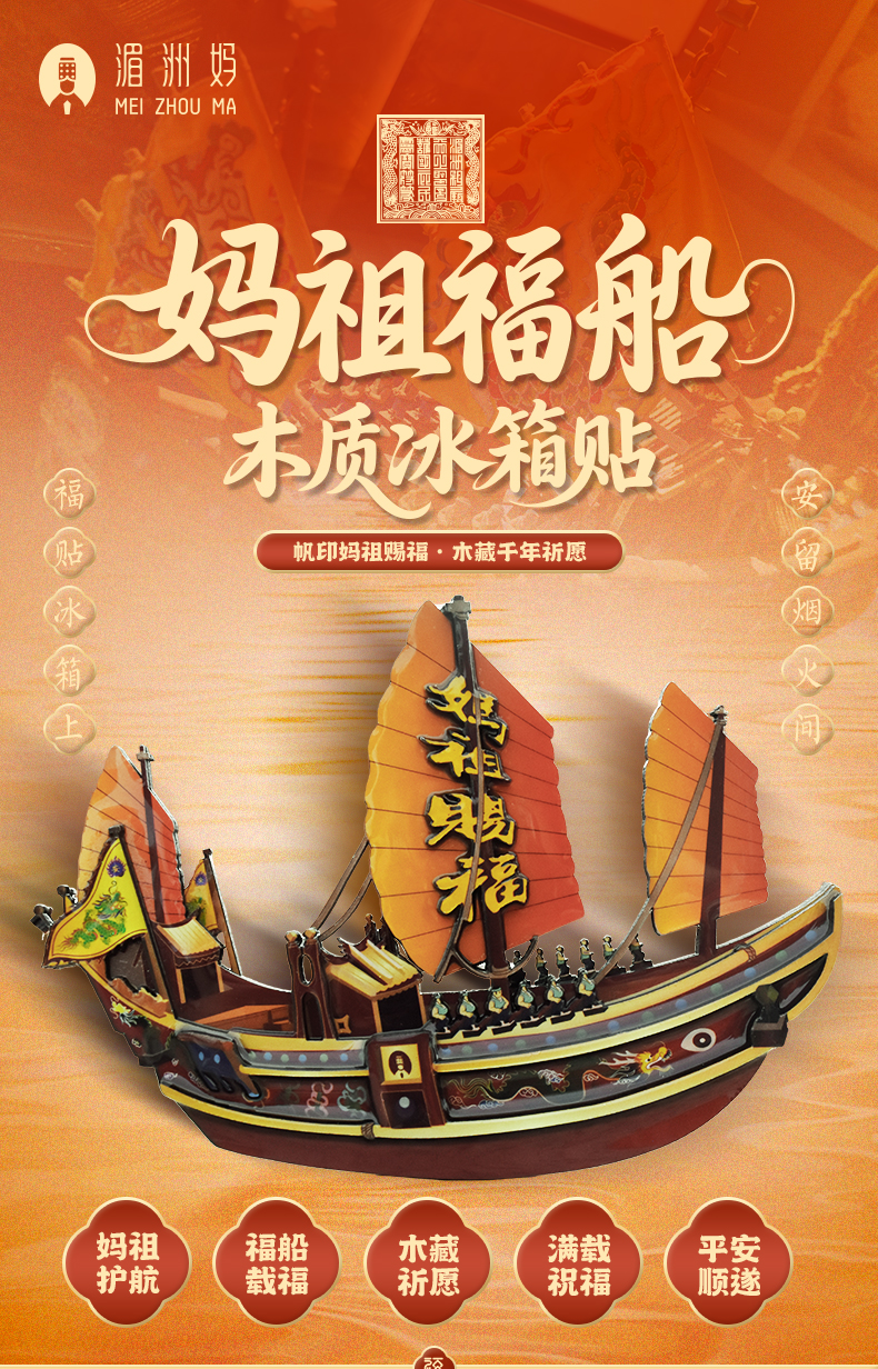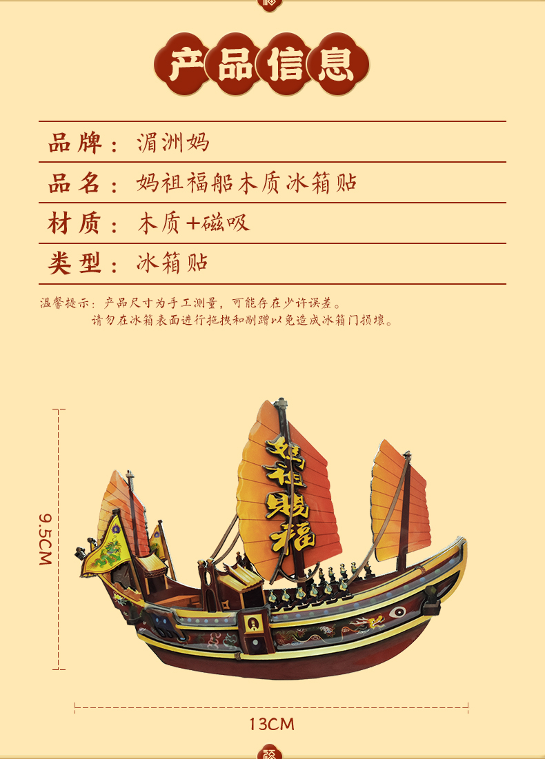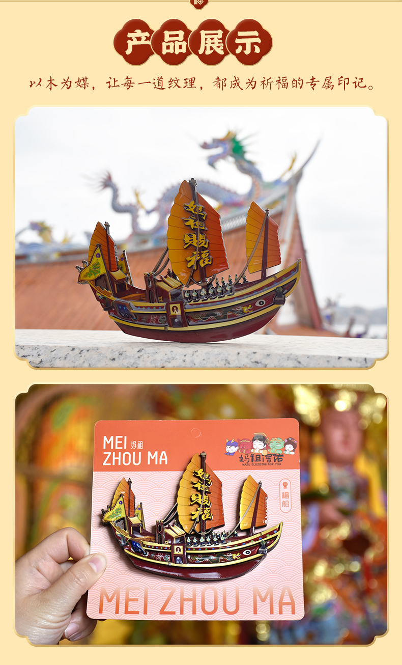 湄洲妈冰箱贴妈祖福船木质冰箱贴文化创意装饰
