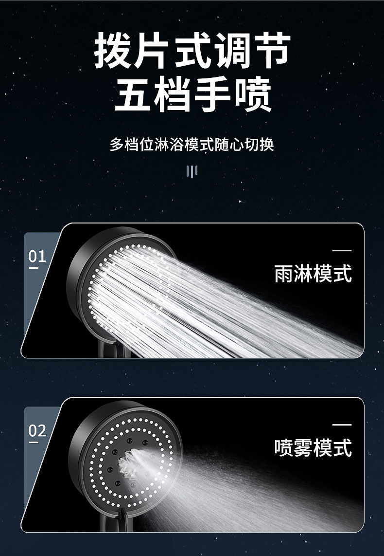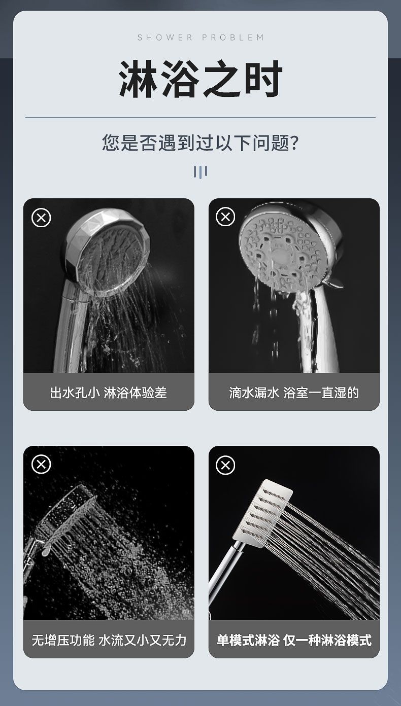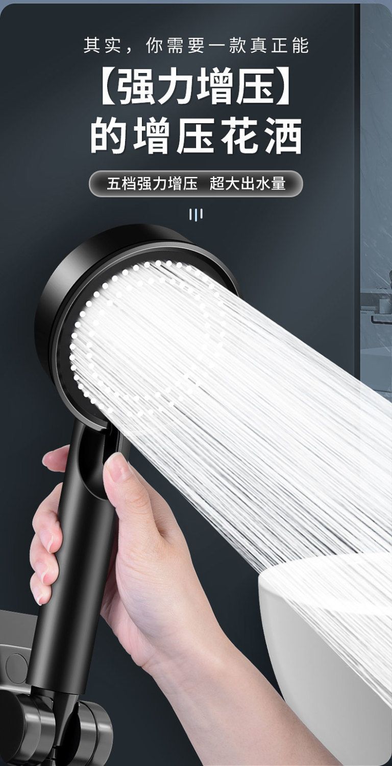 【好用不贵❗️五档强劲增压花洒】自洁硅胶水孔防堵,加厚耐摔材质,强劲增压无惧低水压,五档调节满足不同需求,四分通用,安装简单,新旧浴室通用,淋浴喷头五档出水软管支架增压沐浴花洒L