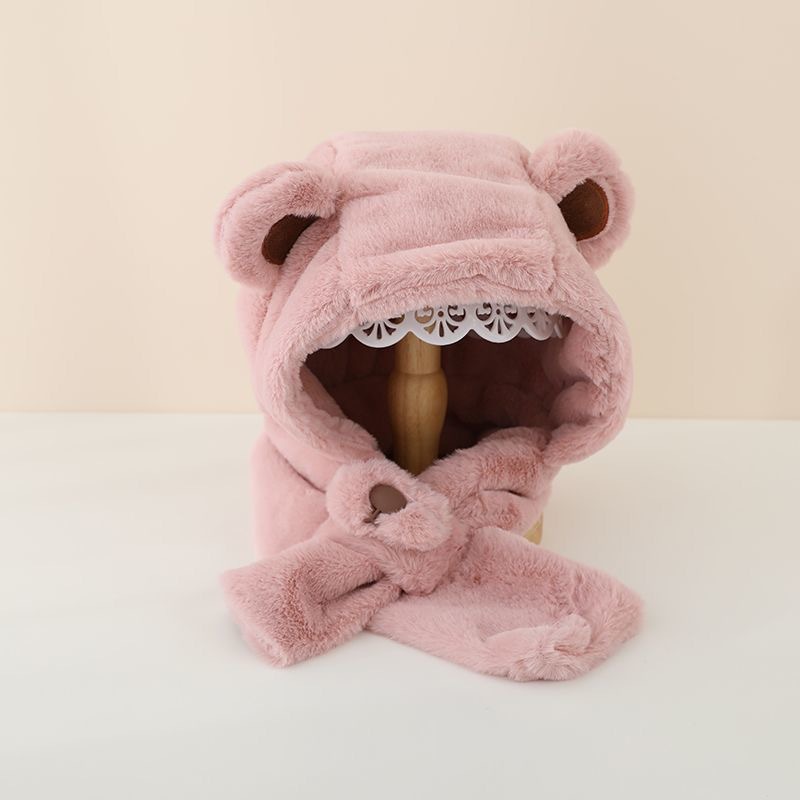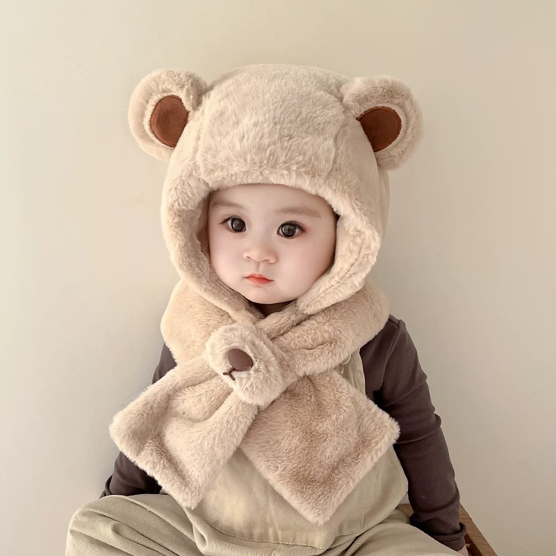 【熊宝宝❗️儿童帽】帽子围巾一体超萌哒,立体锁温,保暖加倍,随意宅脱不炸毛,冬季加绒加厚男女宝宝护耳毛绒帽婴儿保暖围脖QQ