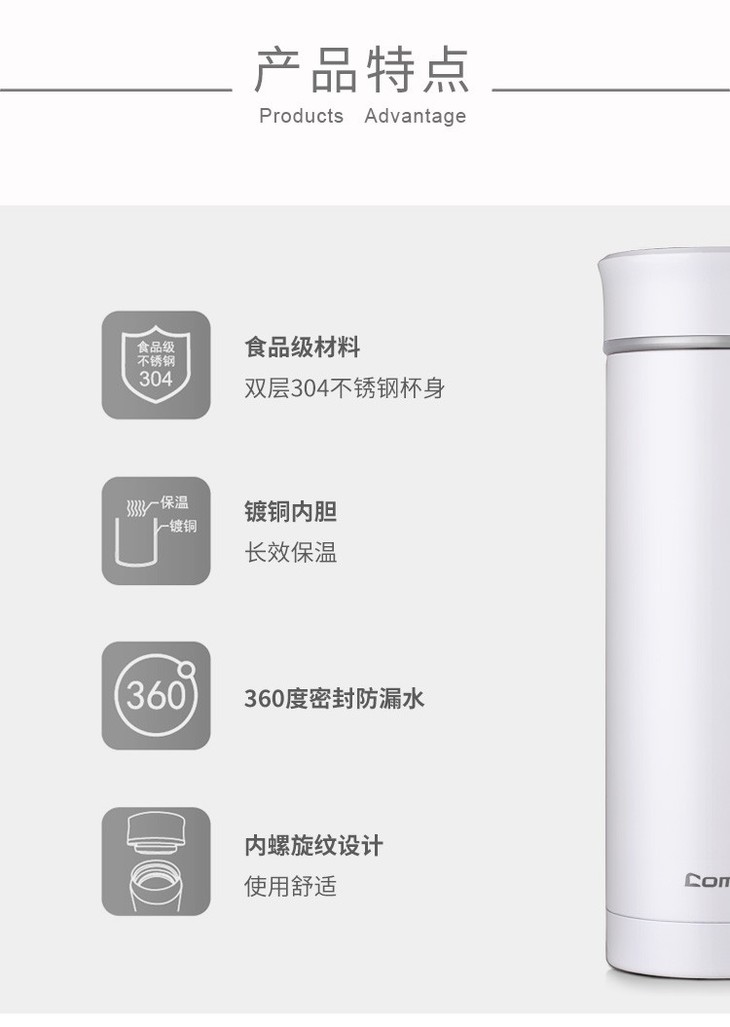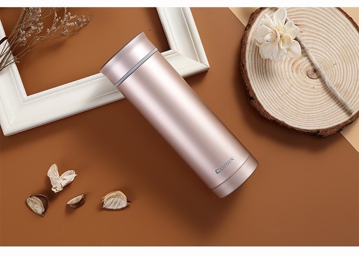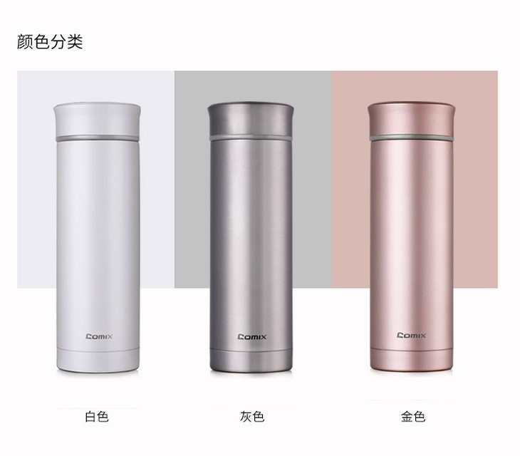 齐心(Comix) 保温杯 300ml 便携真空商务办公保温茶杯 白/金/灰色 L313 金色