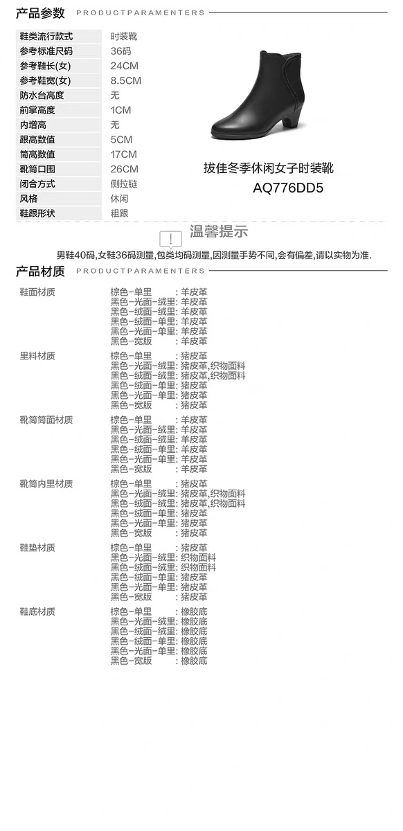 【云粉节】 【拔佳】BF楼Bata时装靴女2025冬款羊皮软底通勤百搭短筒靴AQ776DD5 吊牌价1359 活动价939