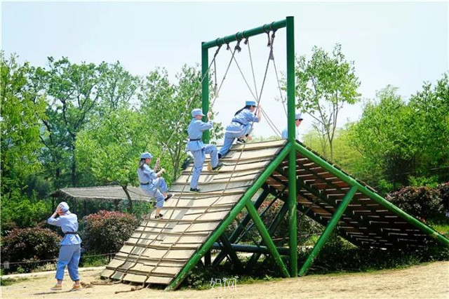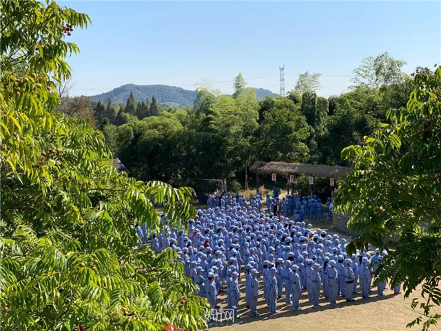 早上指定时间在学校或企业门口集合,空调大巴车前往德清莫干山抗日根据地(蚕乐谷)。车上三大纪律,八项注意,八路军军歌嘹亮