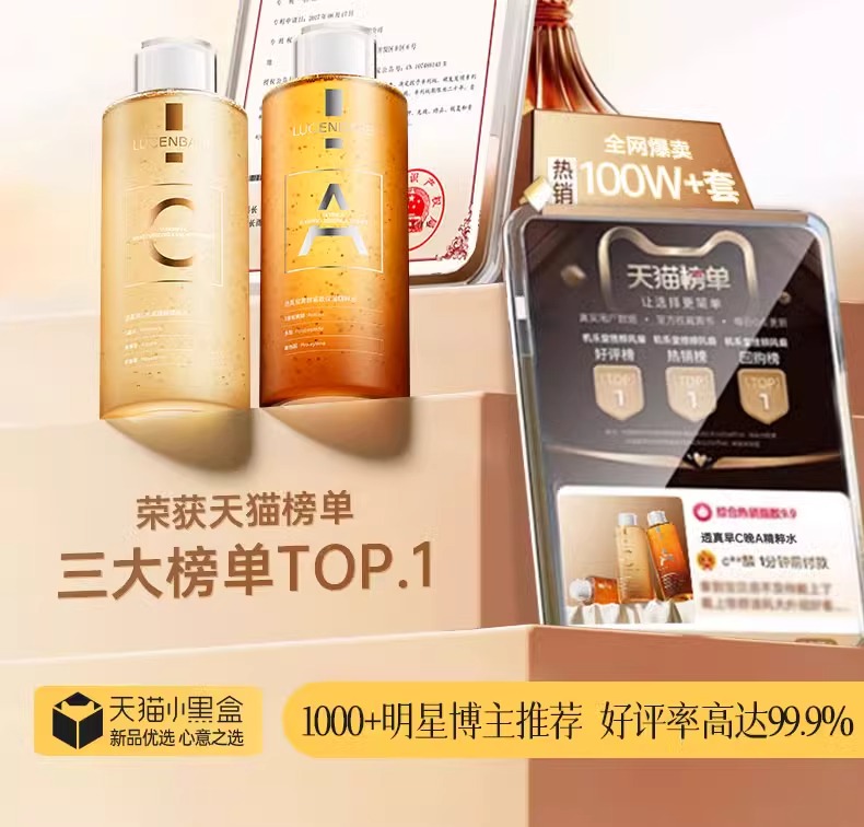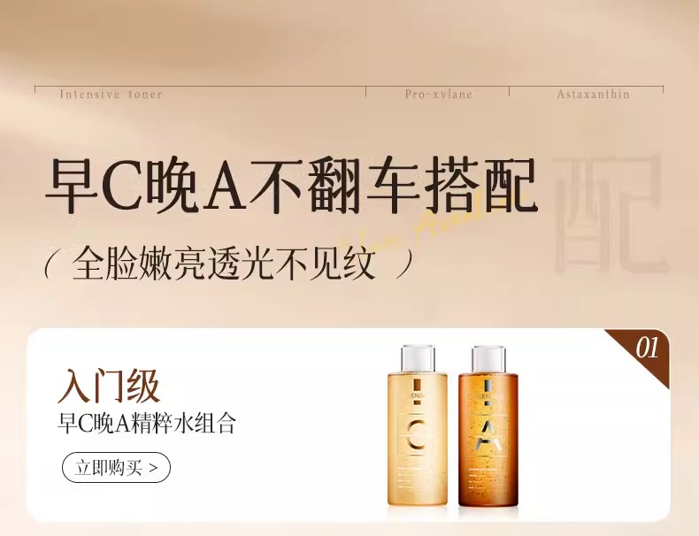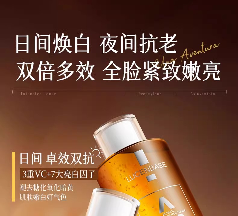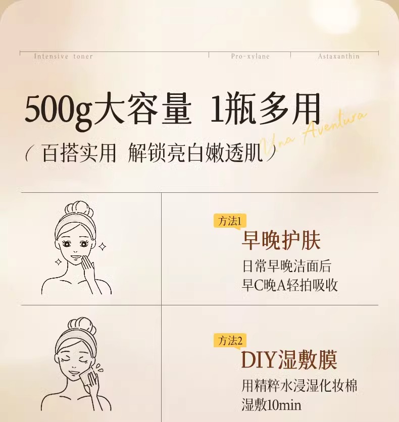 【1敷白净 速成冷白皮】维C水润焕颜精粹水 500ml/视黄醇紧致保湿精粹水500ml#熊果苷发光爽肤水补水保湿精华去黄提亮收缩毛孔化妆湿敷水乳护肤