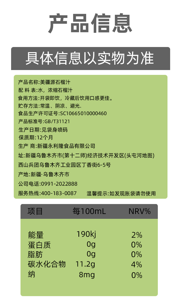 【全国包邮】新疆石榴汁(318ml*5瓶)