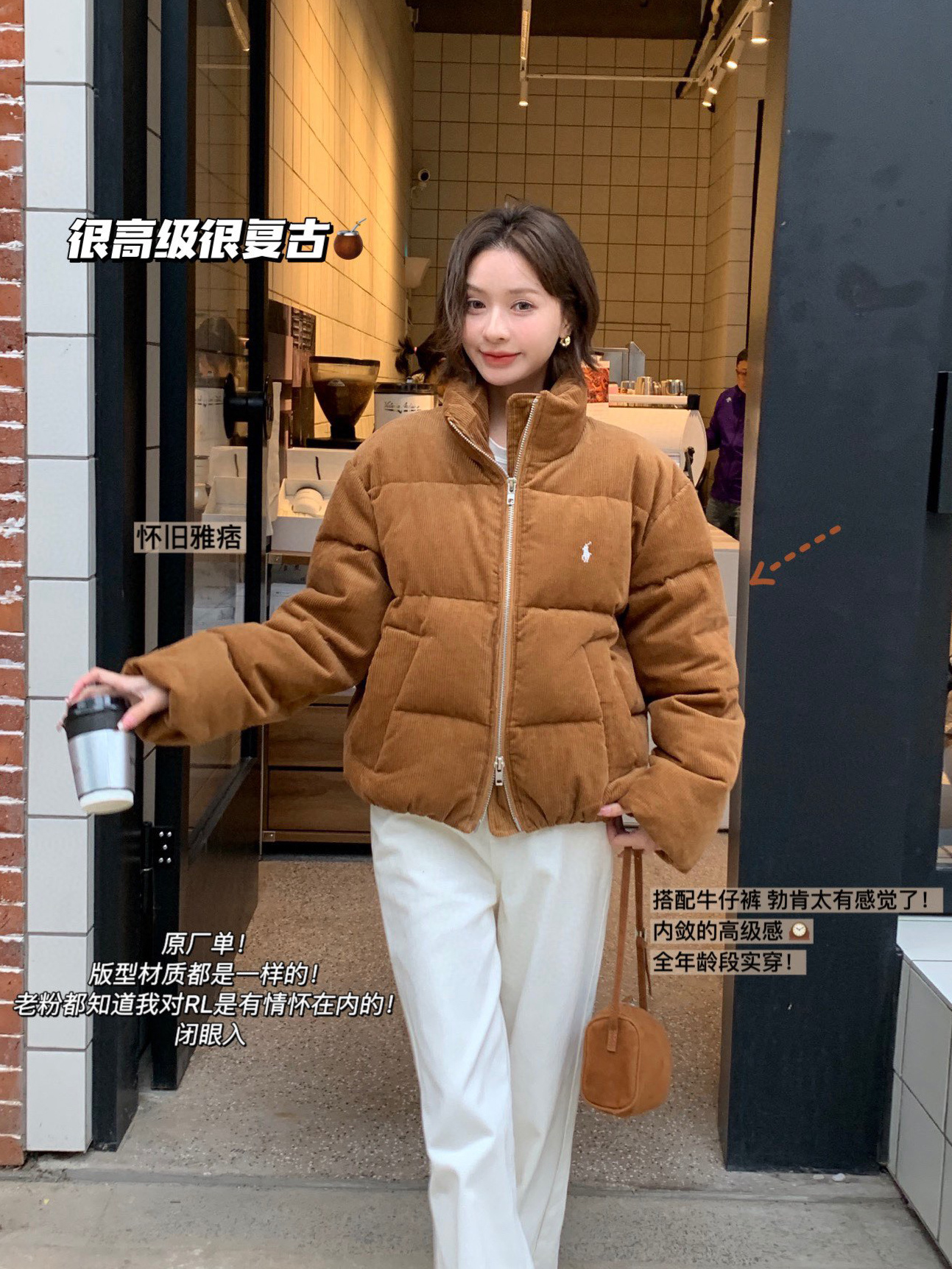 打破你对传统羽绒服臃肿的刻板印象,出片率非常高~灯芯绒面冬季再冷触摸也是软软暖暖的。