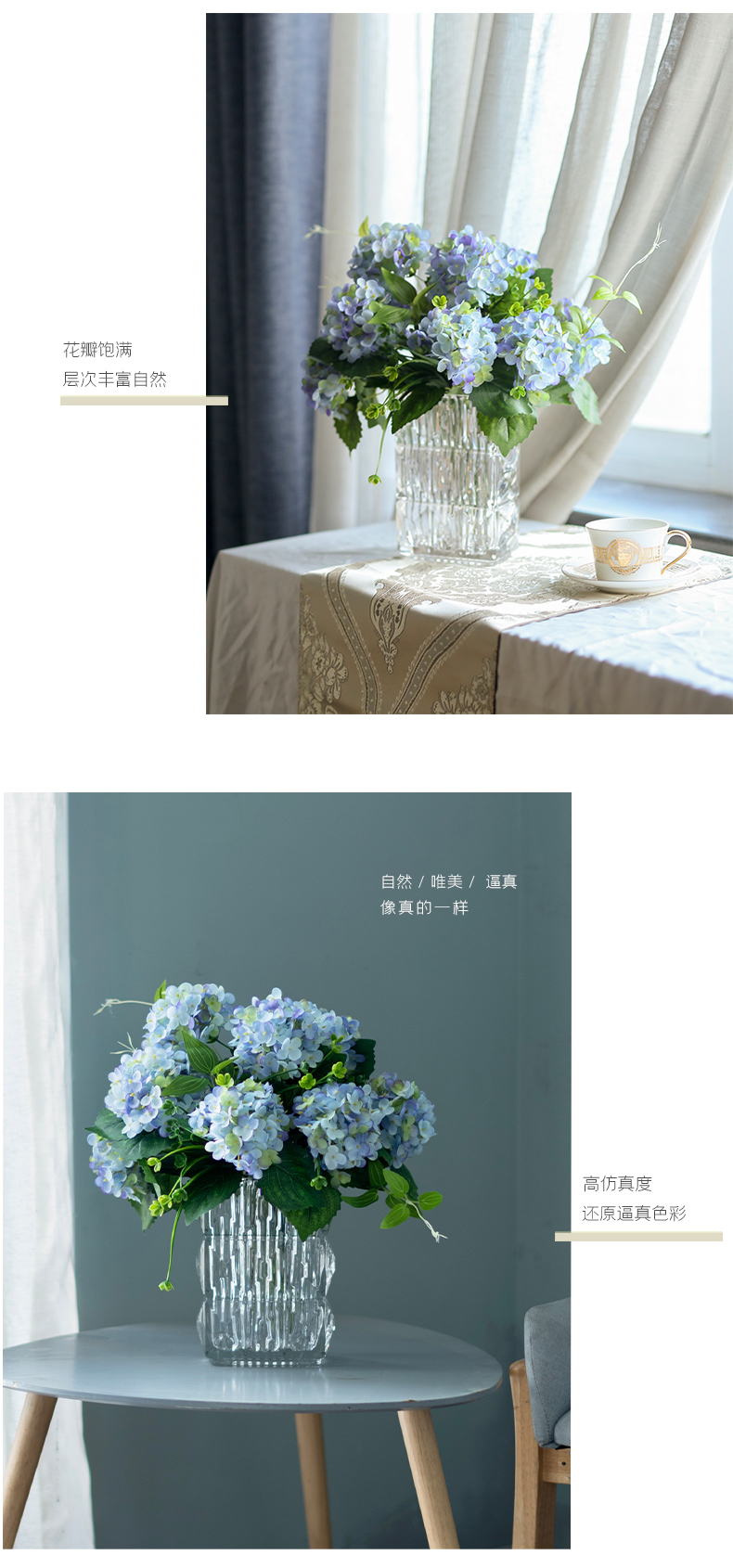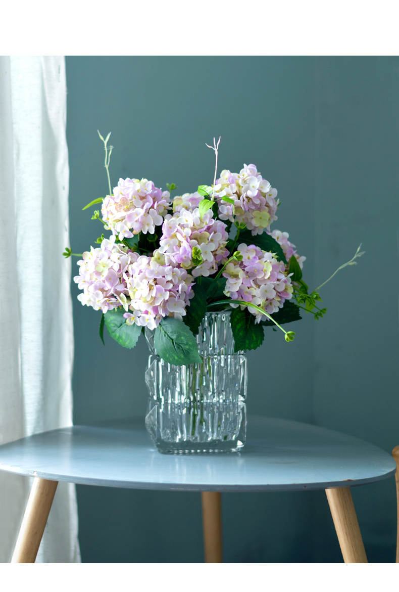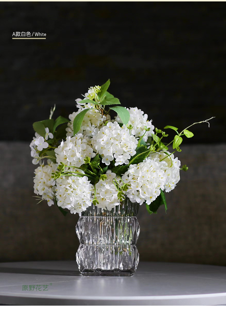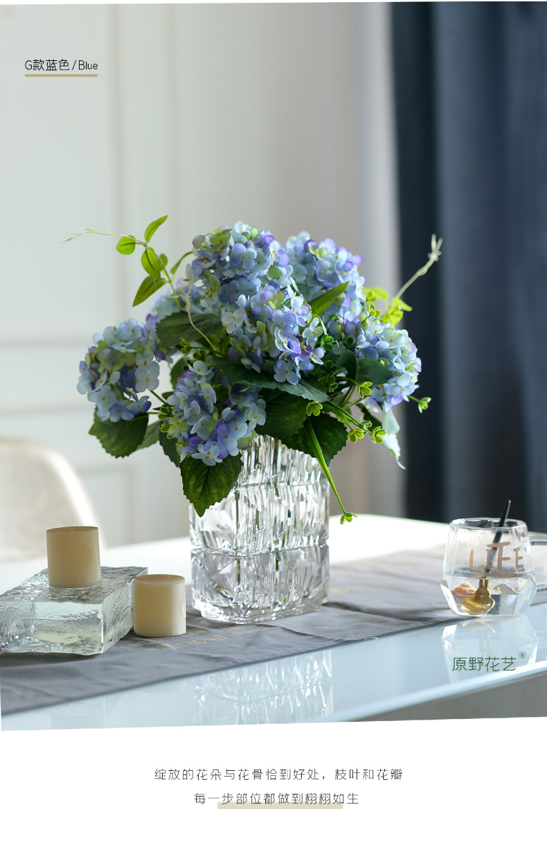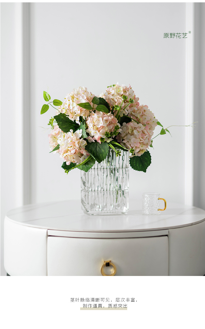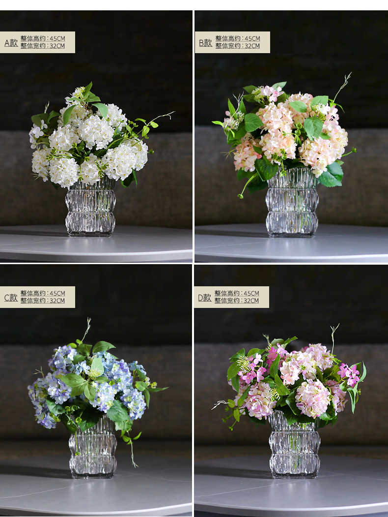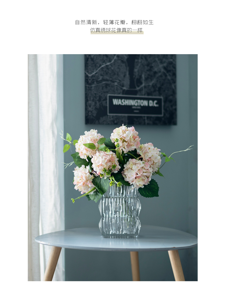 高品质绣球花仿真花束高档客厅茶几餐厅桌酒店摆花假花玻璃摆设件
