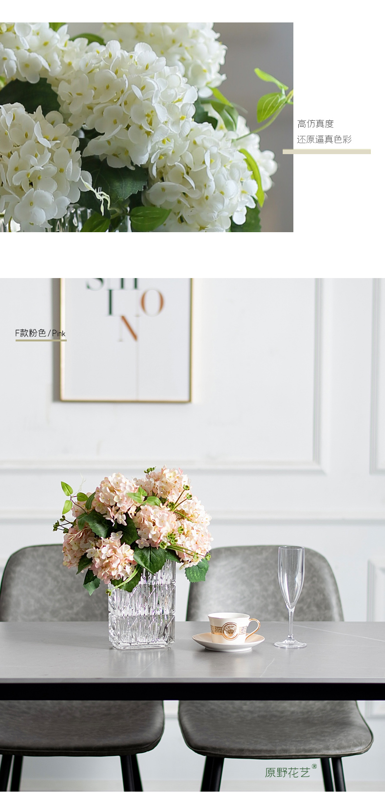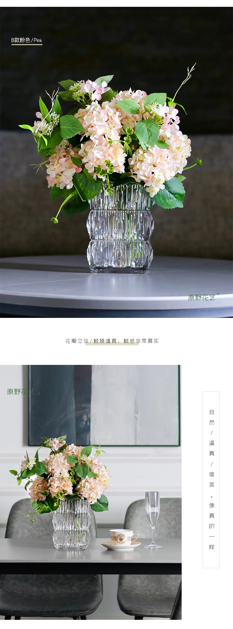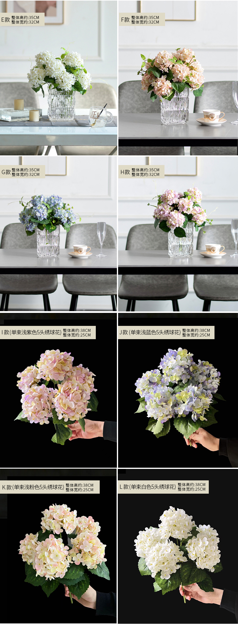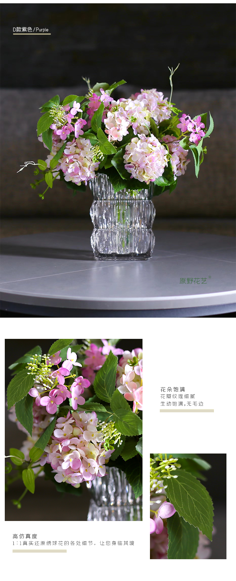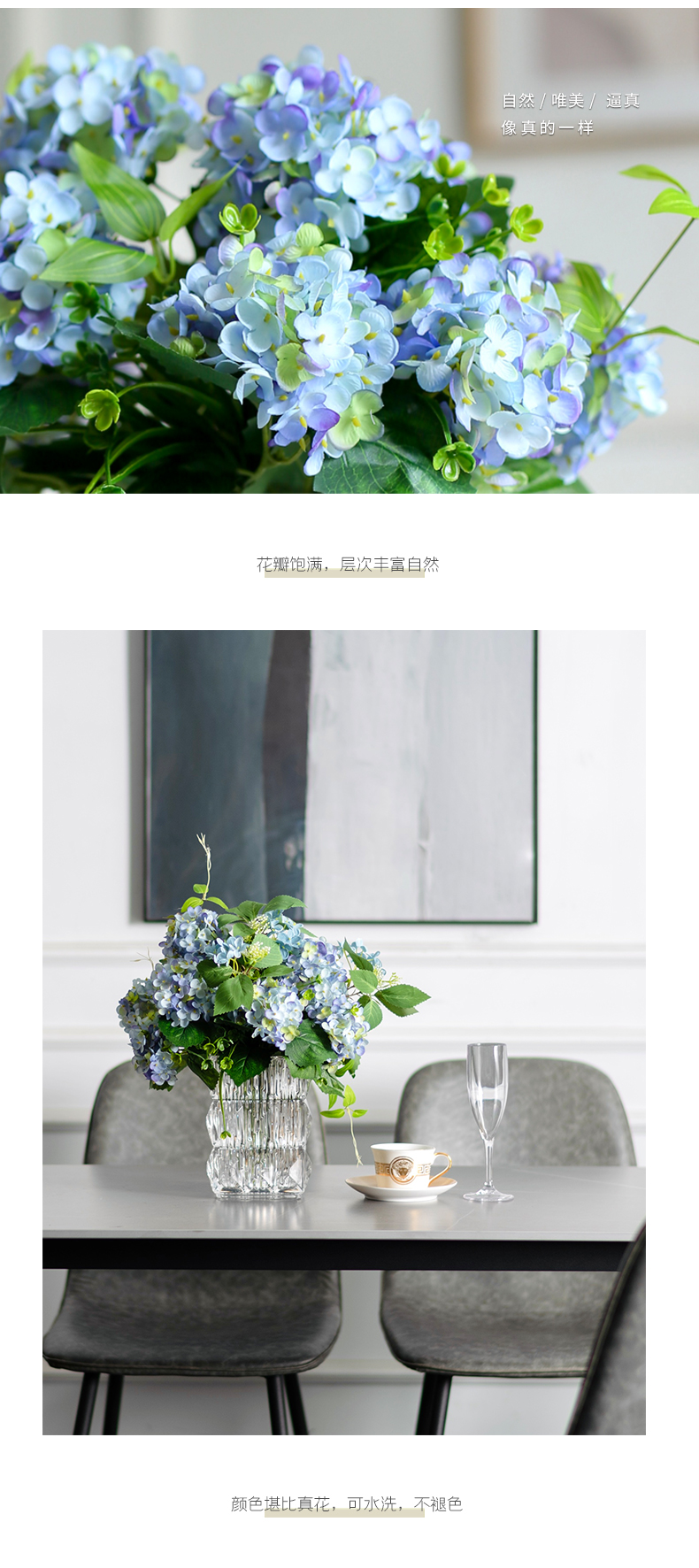 高品质绣球花仿真花束高档客厅茶几餐厅桌酒店摆花假花玻璃摆设件