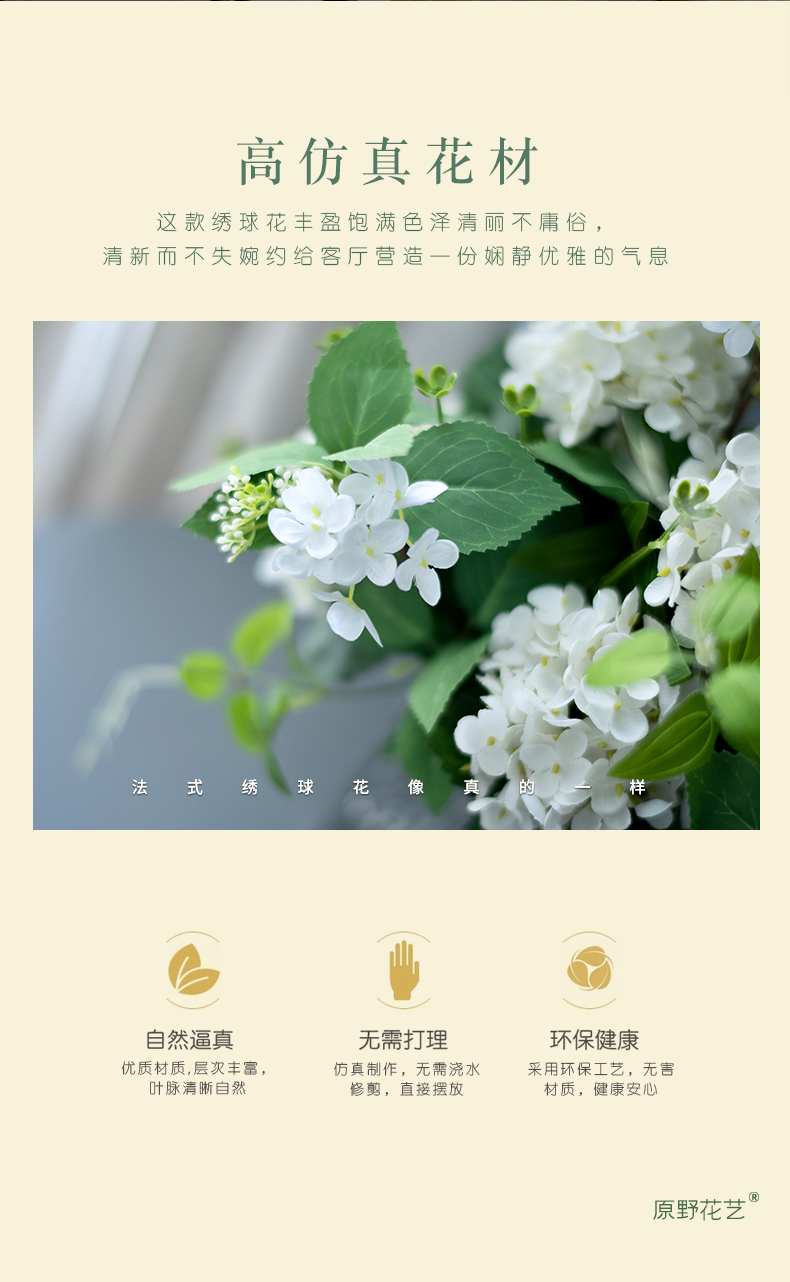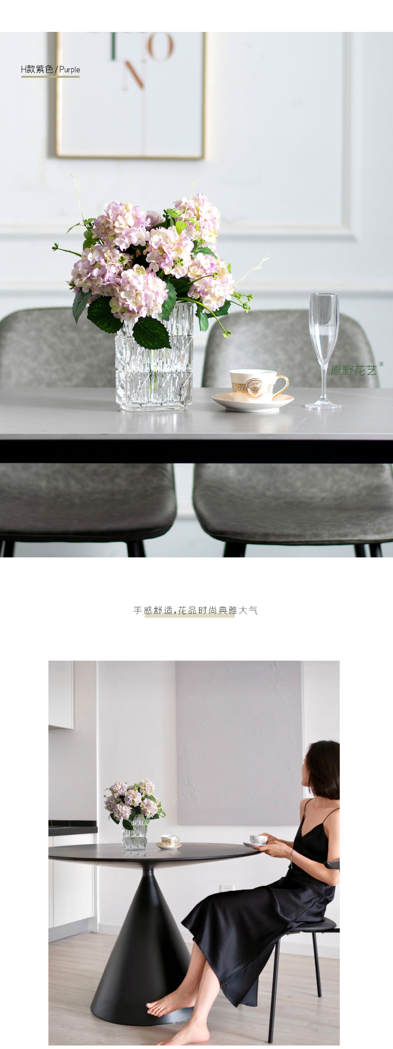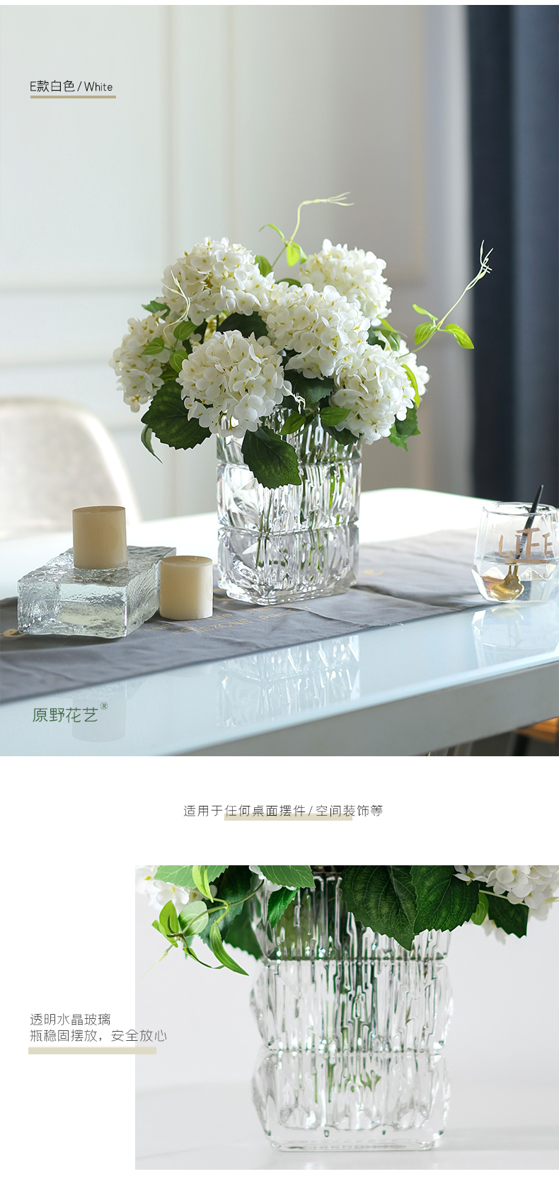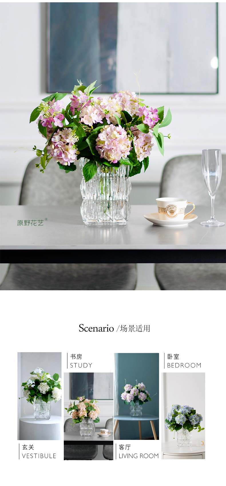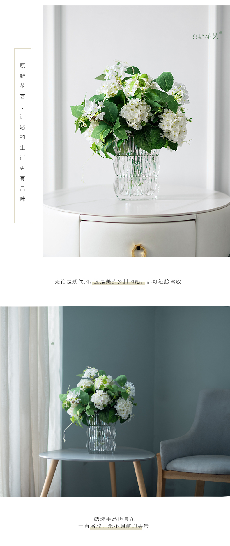 高品质绣球花仿真花束高档客厅茶几餐厅桌酒店摆花假花玻璃摆设件