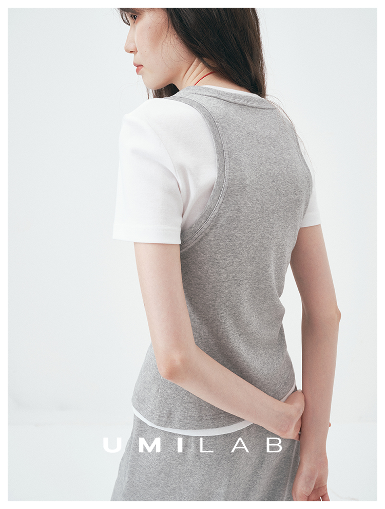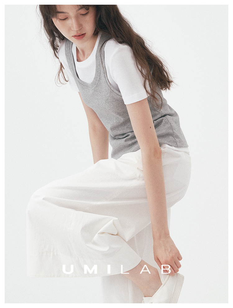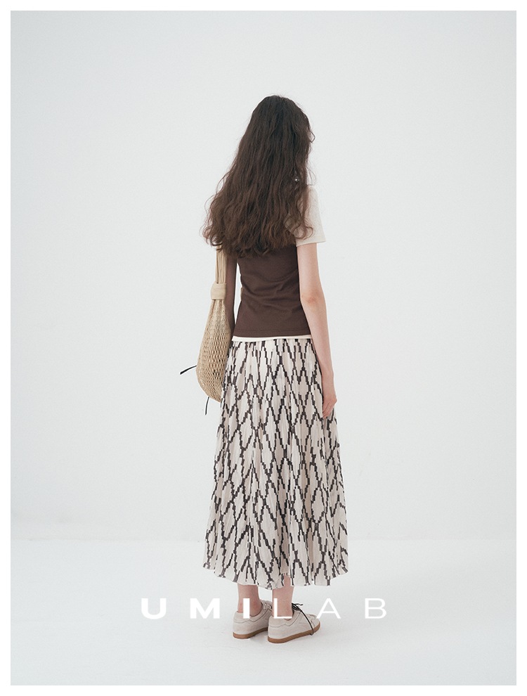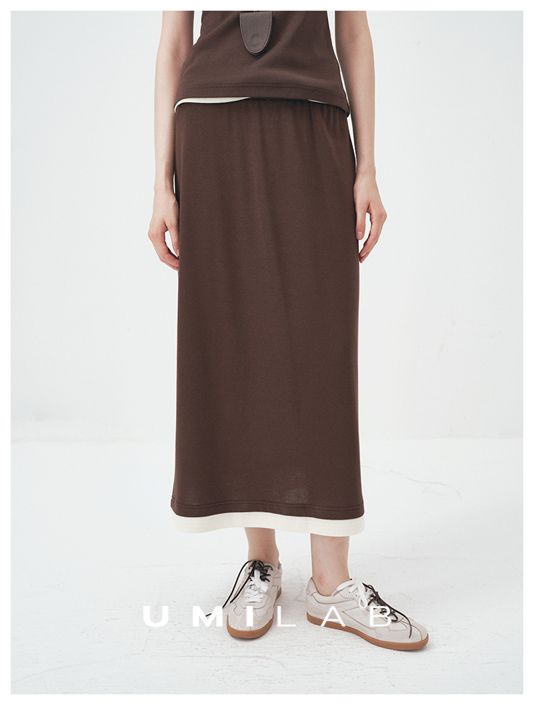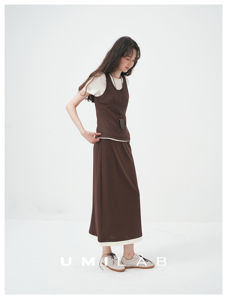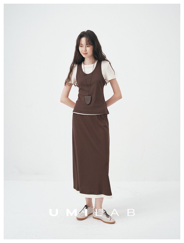 UMILAB|沐光*随性自在精梳棉撞色叠穿真两件T恤/松紧腰半裙E252W