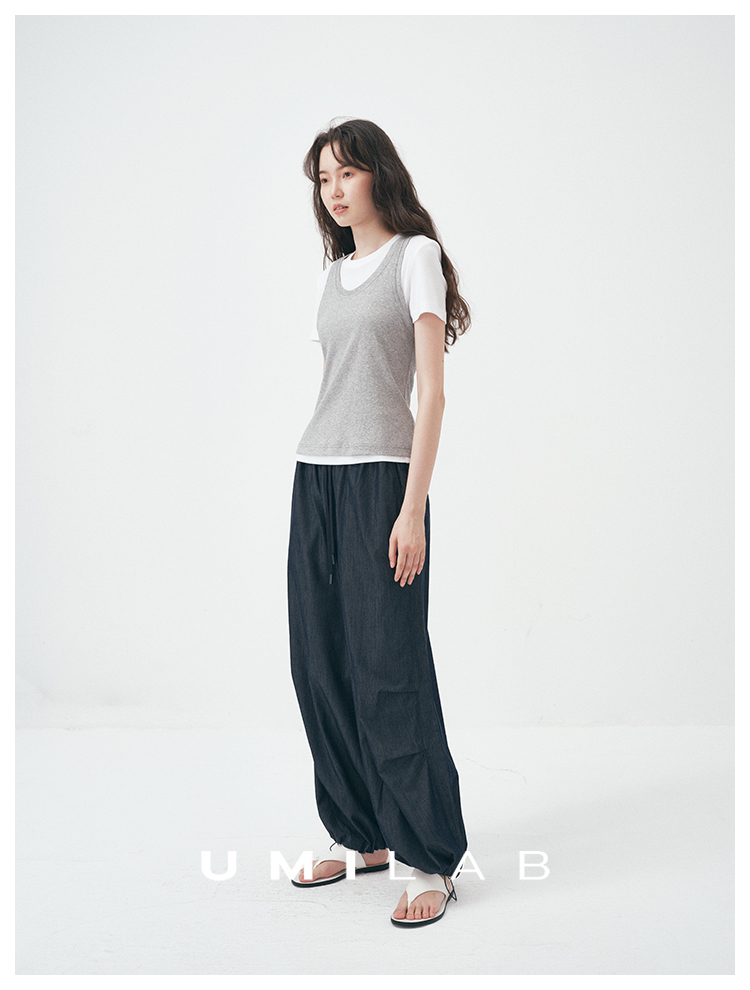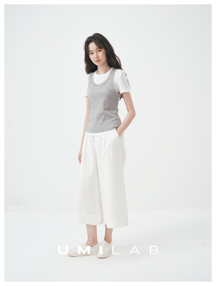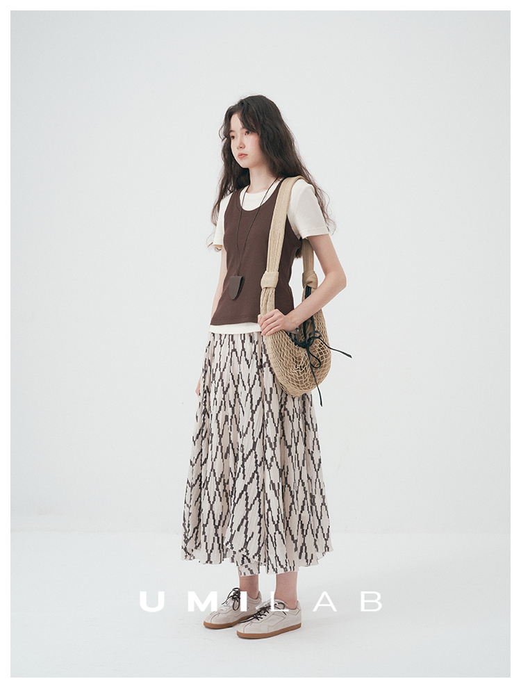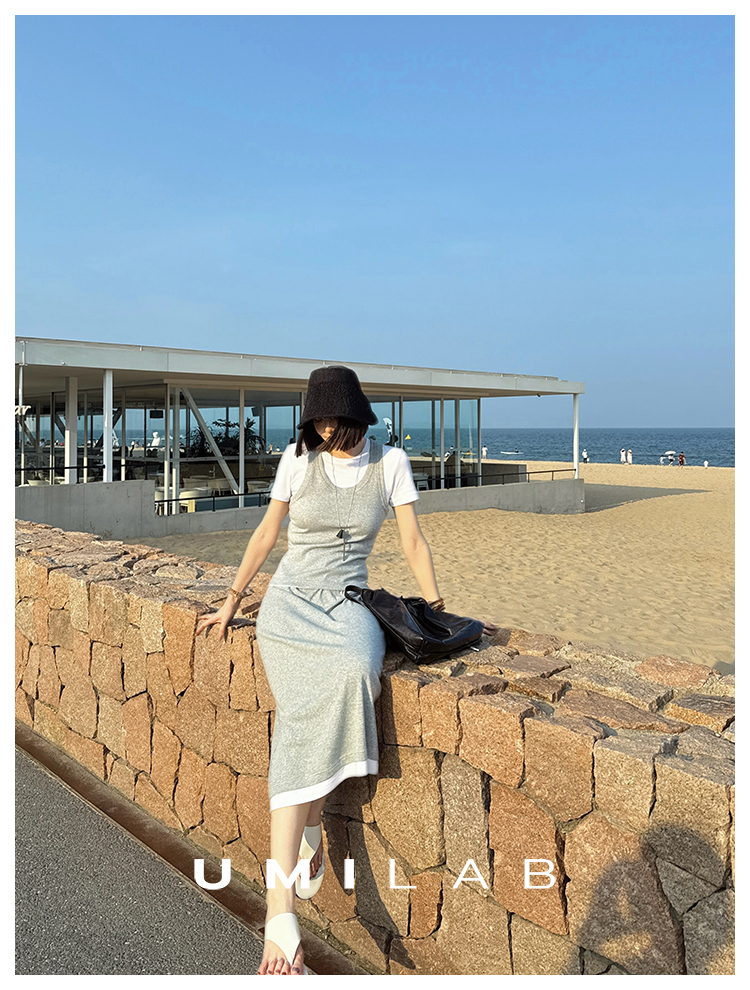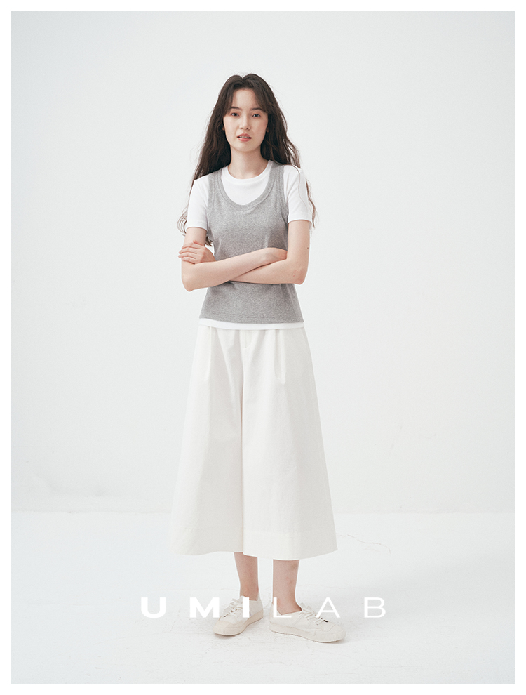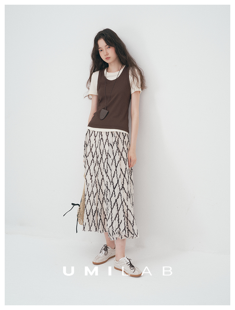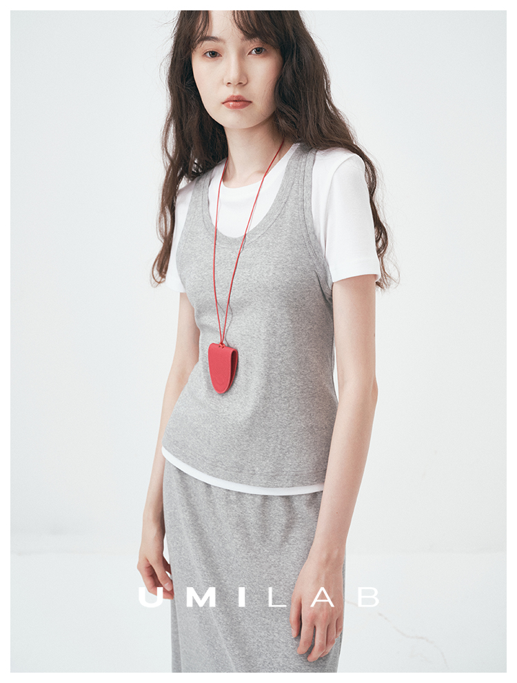 UMILAB|沐光*随性自在精梳棉撞色叠穿真两件T恤/松紧腰半裙E252W