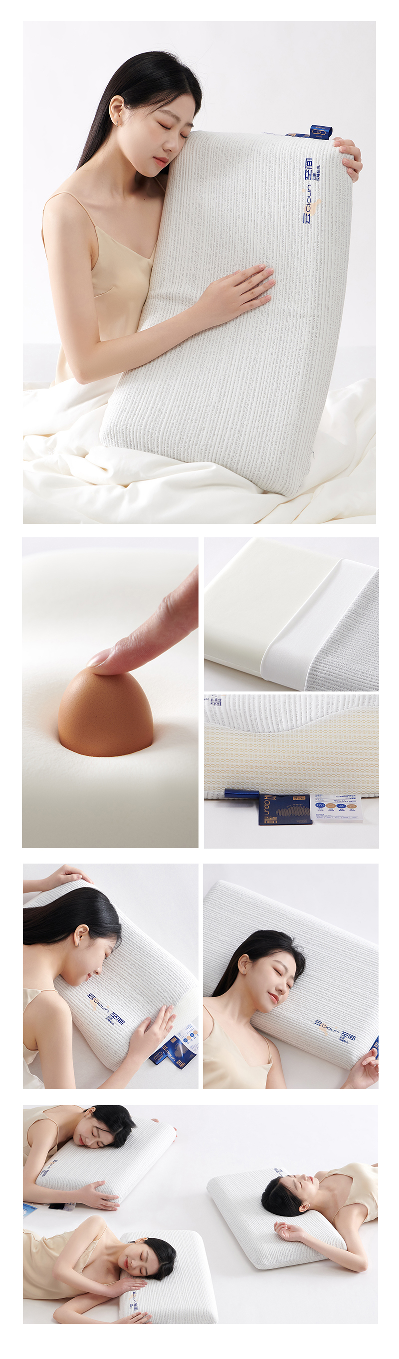 🔸 云空间记忆棉枕采用慢回弹记忆棉,带来如陷云端般舒适且恒温的睡眠体验。同时,依据人体工程学,采集分析大量数据,将枕头形状设计为精准贴合头颈部曲线,均匀承托重量,呵护头颈部健康