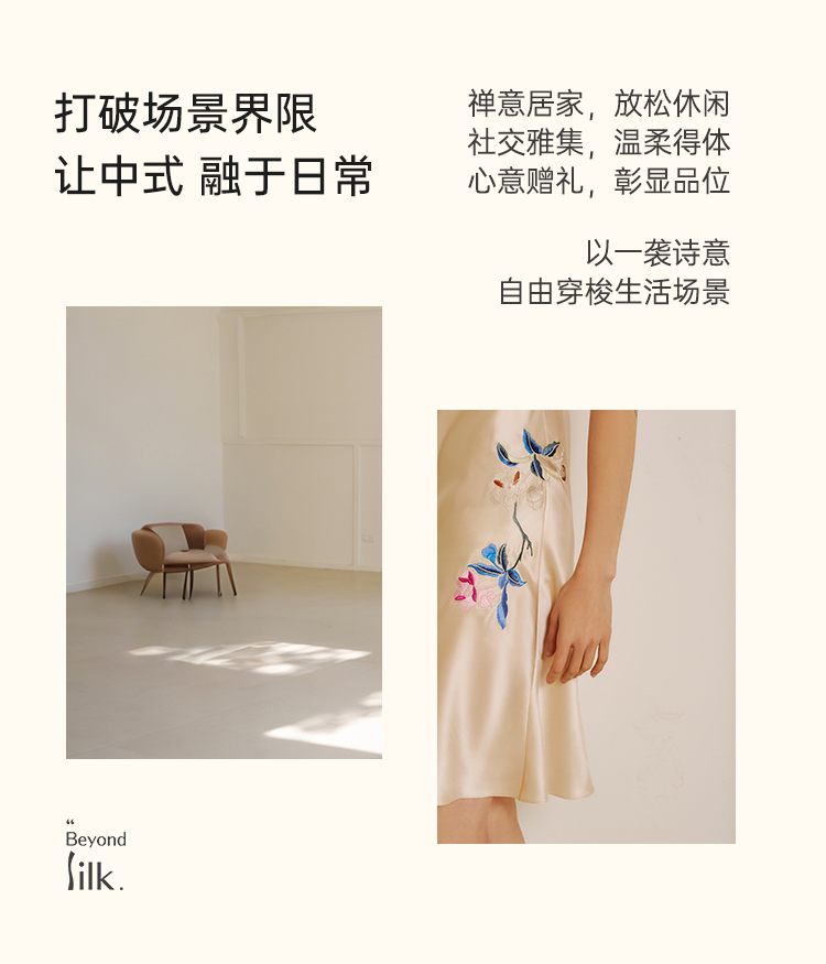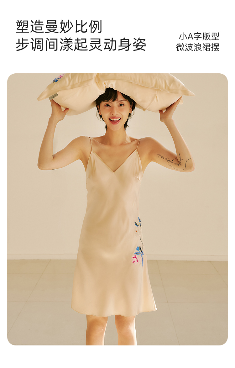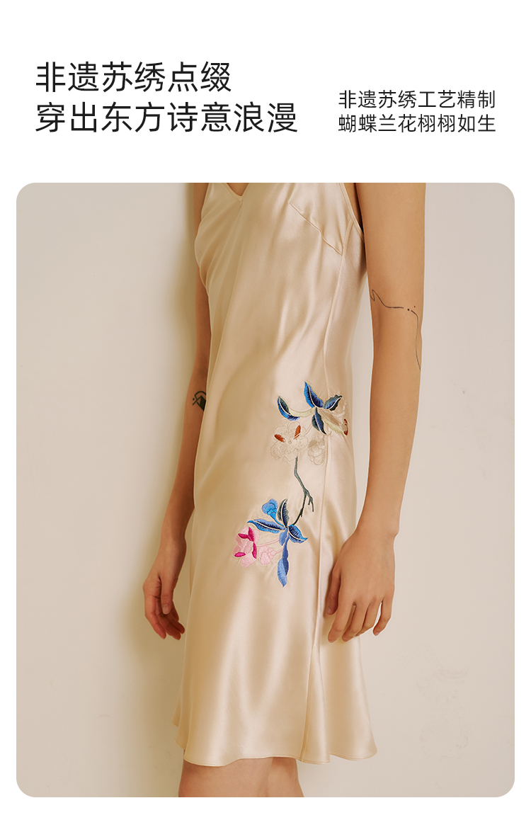 国潮刺绣真丝吊带裙SANGLUO桑罗桑蚕丝系带露背睡裙女睡衣