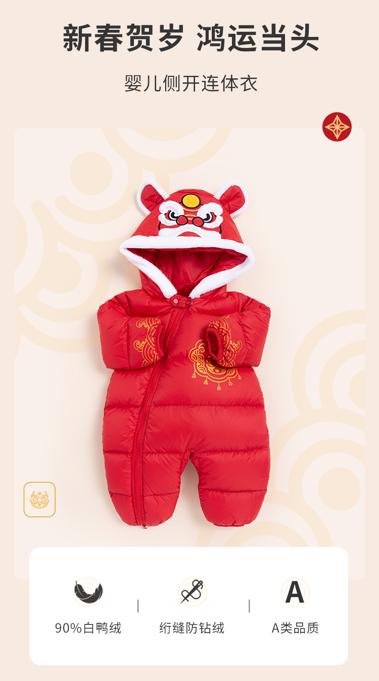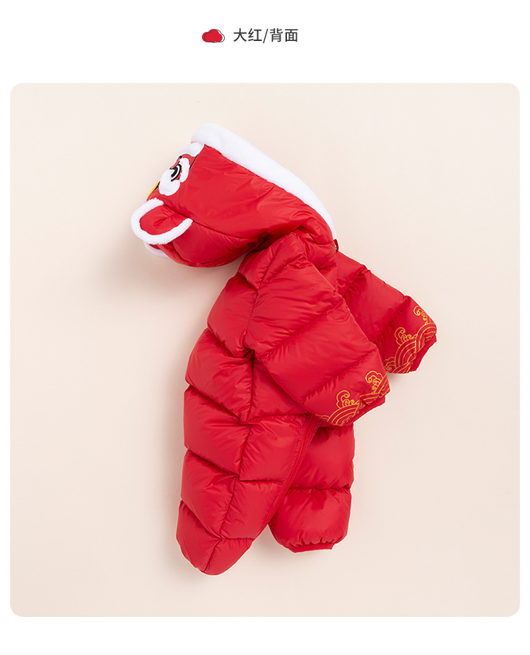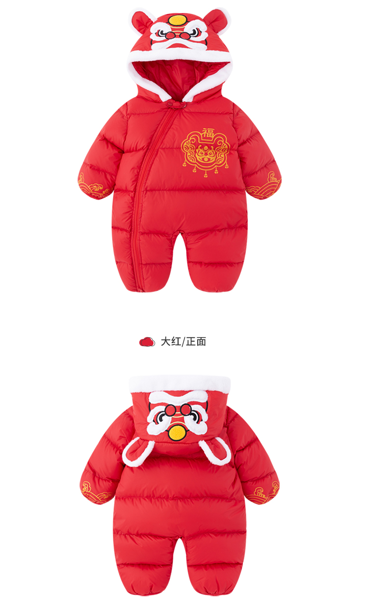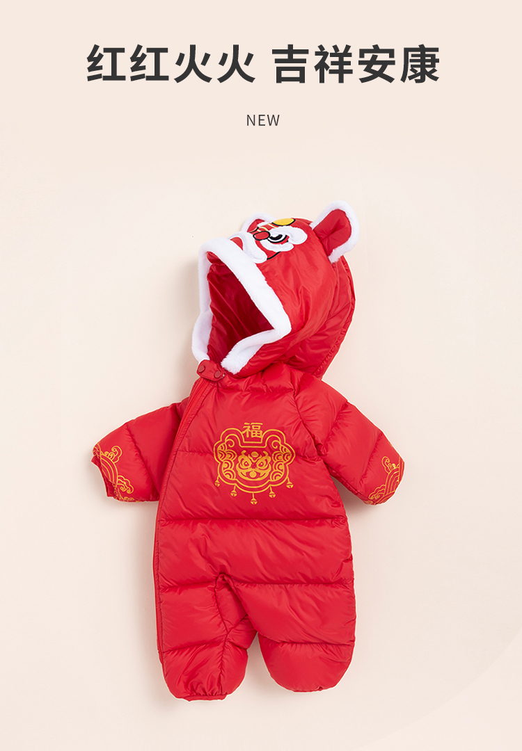 贝贝怡新生儿婴幼儿新年贺岁满月宝宝保暖羽绒连体衣冬哈衣214L501