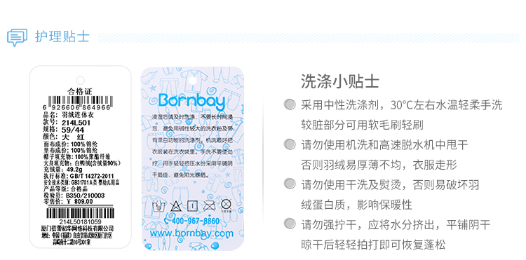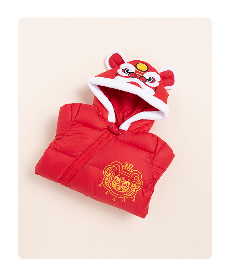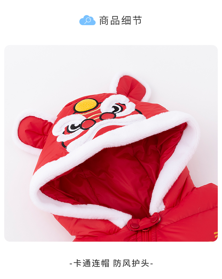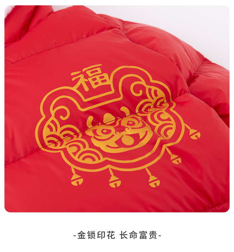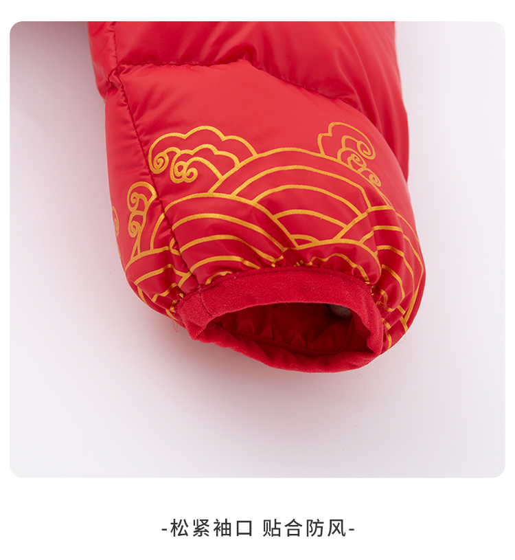 贝贝怡新生儿婴幼儿新年贺岁满月宝宝保暖羽绒连体衣冬哈衣214L501