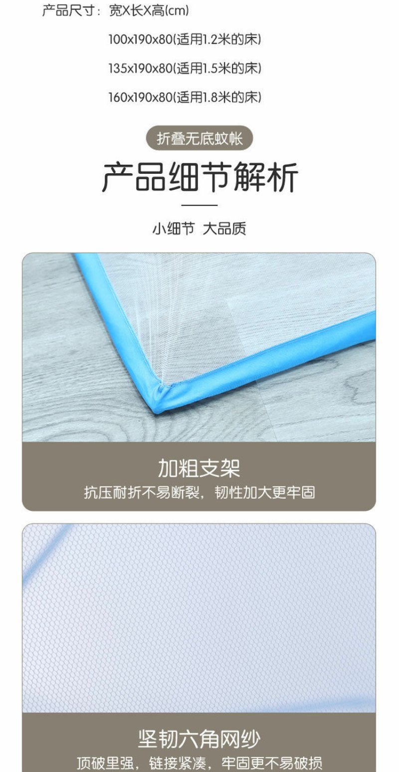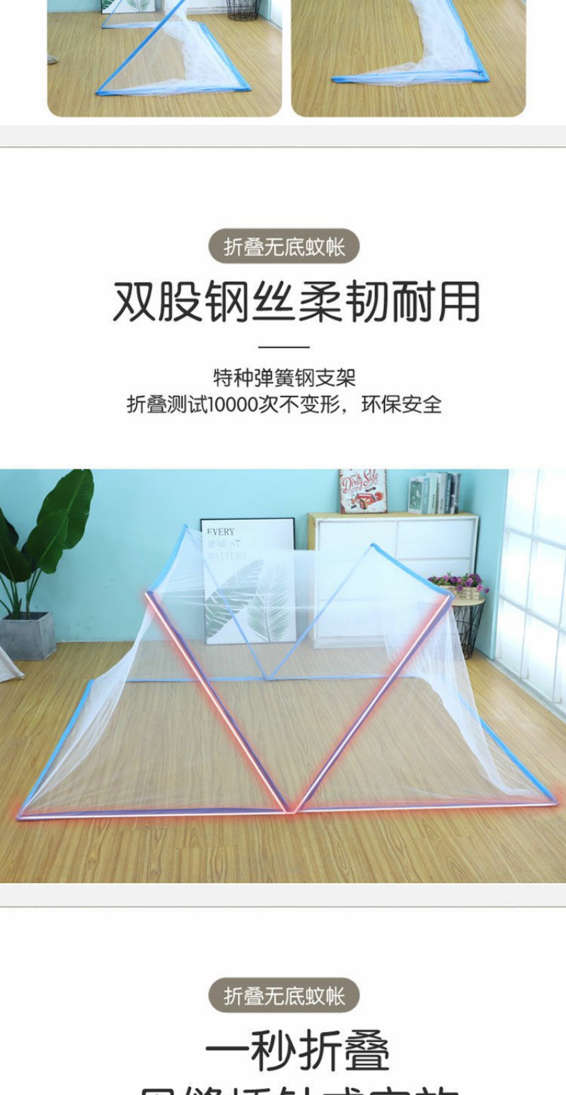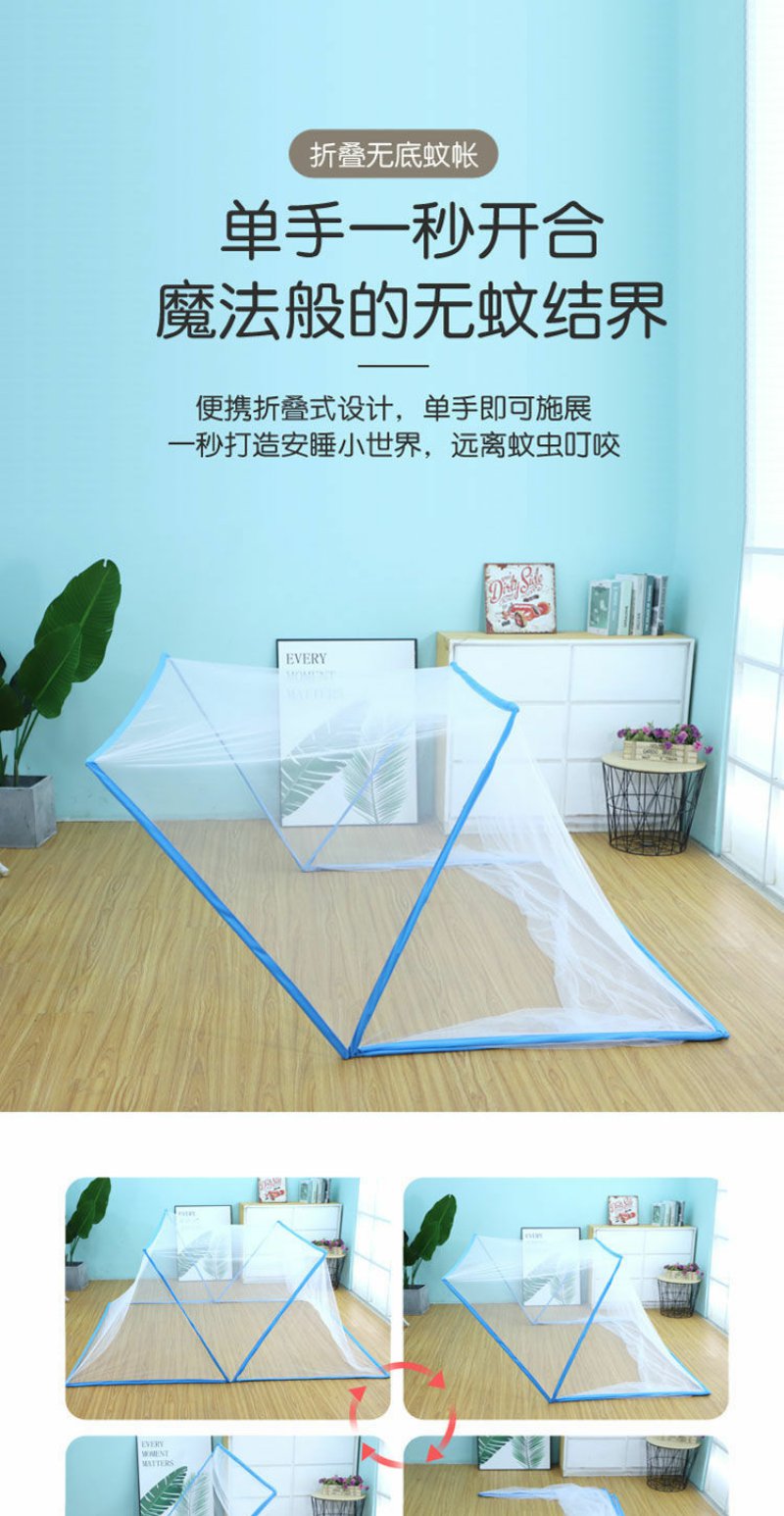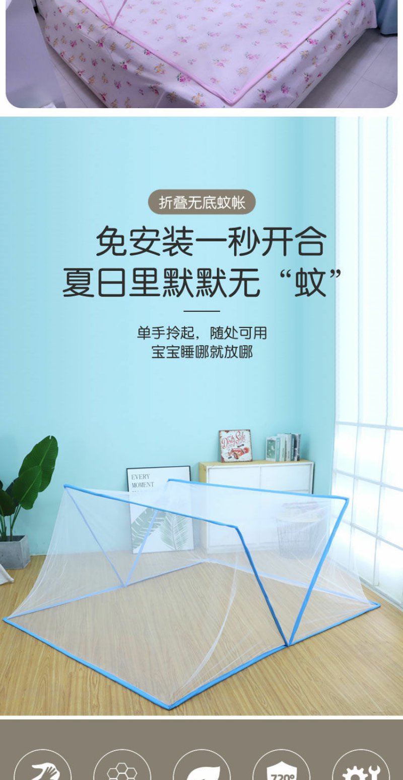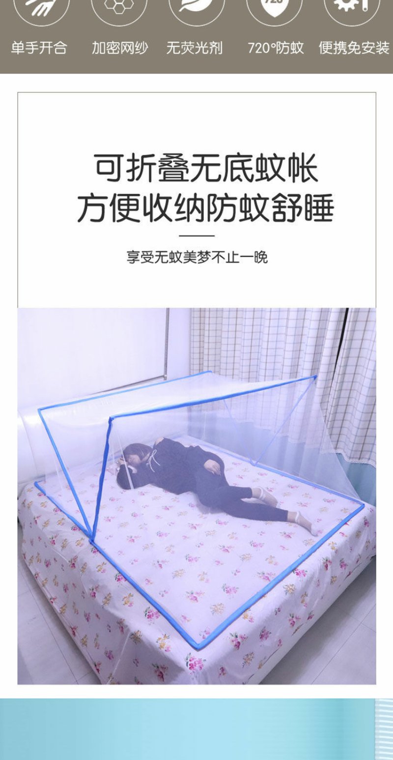 蚊帐免安装折叠学生宿舍双人通用防蚊罩可收纳大人无底家用防蚊罩