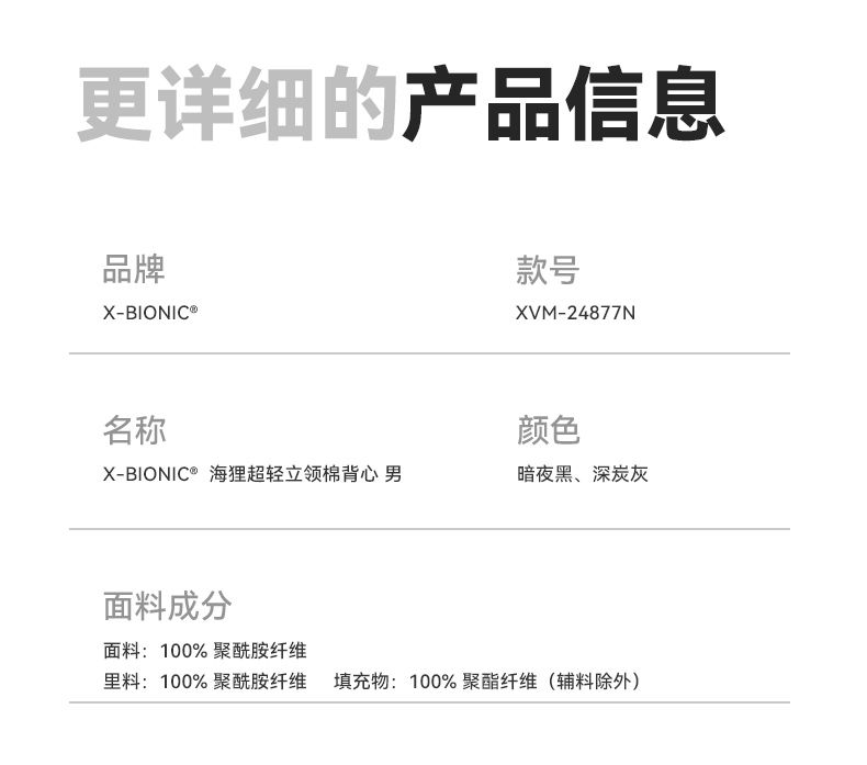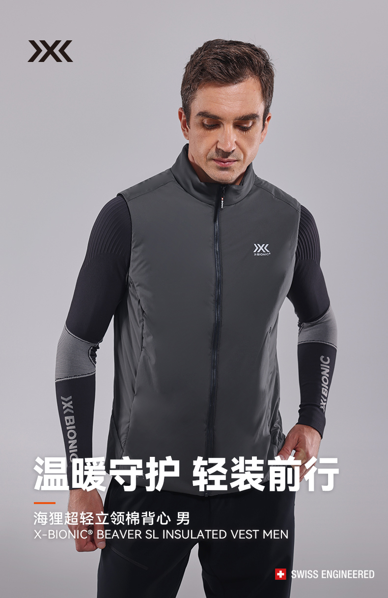 X-BIONIC 海狸轻量立领棉背心 男 秋冬中间保暖层棉马甲 XVM-24877N