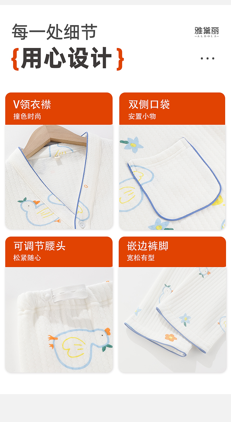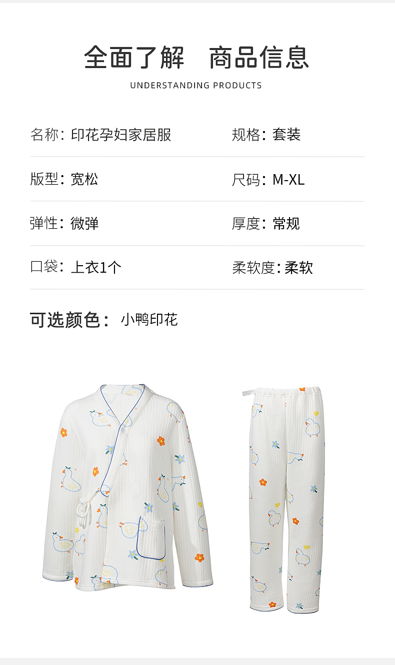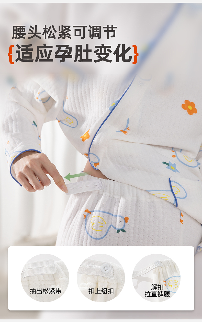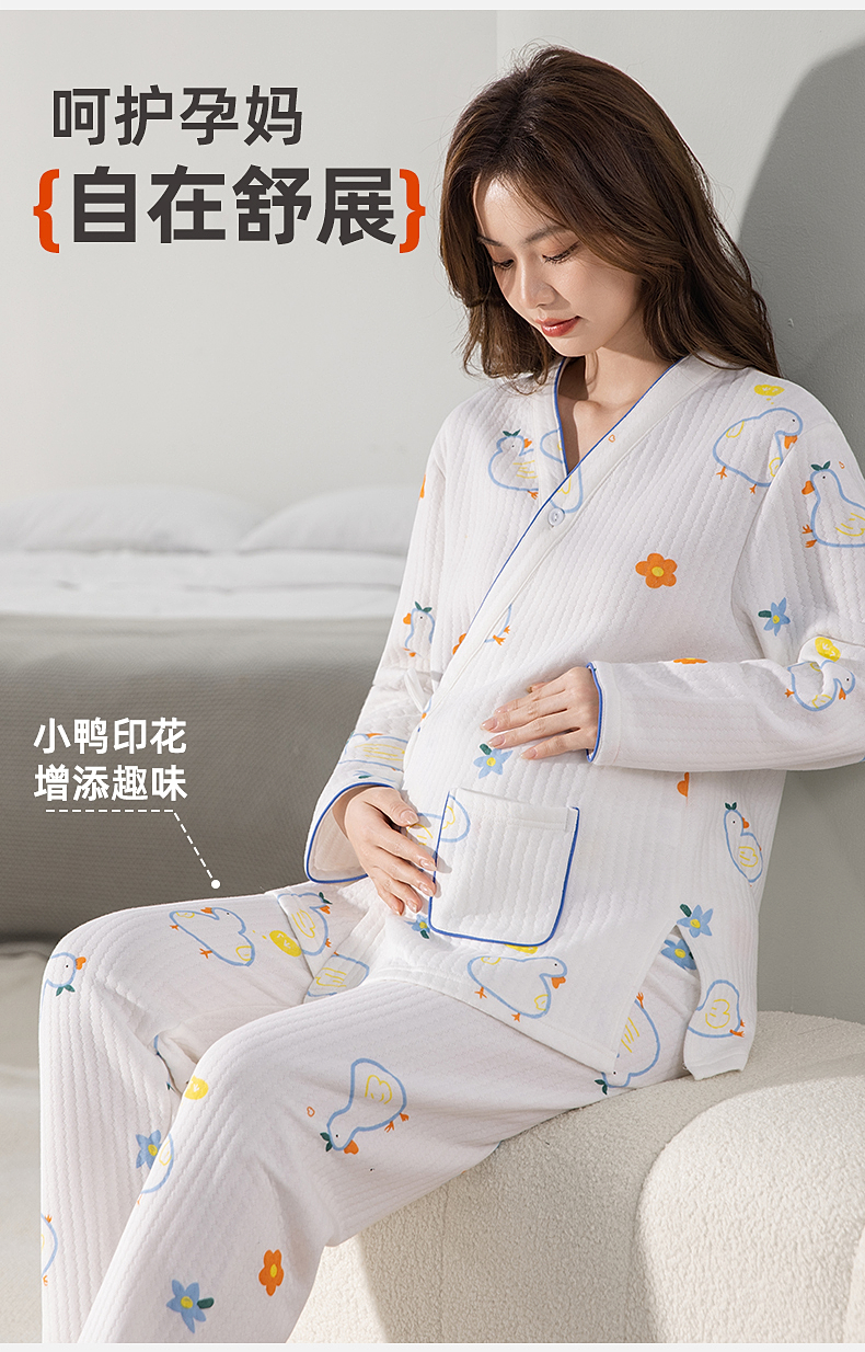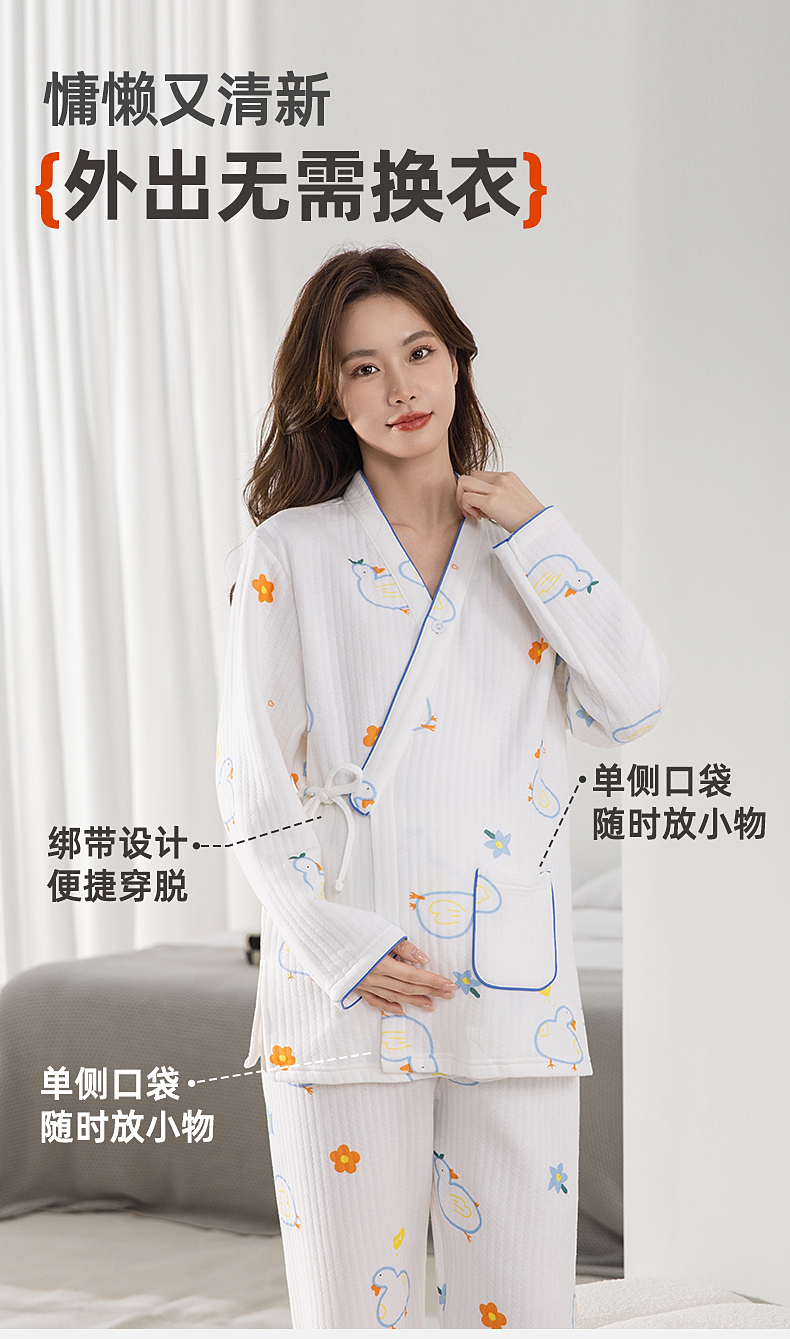 雅黛俪孕妇家居服套装柔软舒适空气棉哺乳期居家睡衣可调节松紧家居服