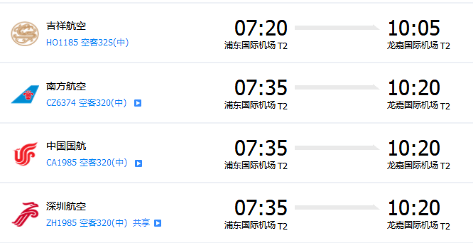 去程:3/10 上海浦东机场 - 龙嘉机场