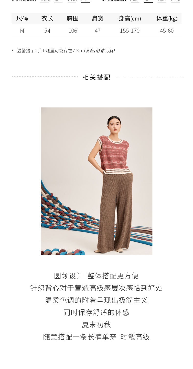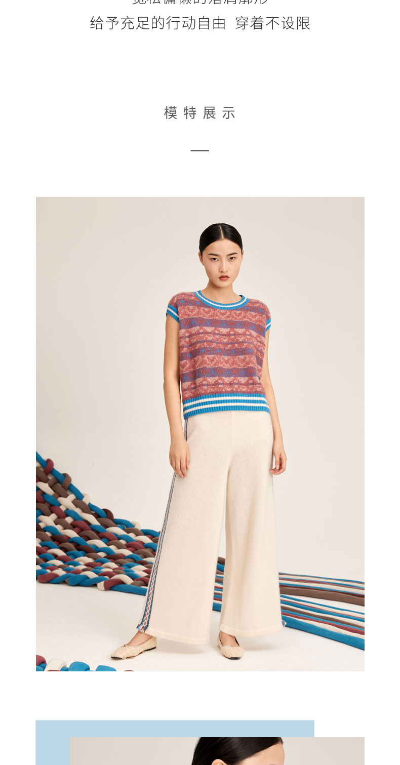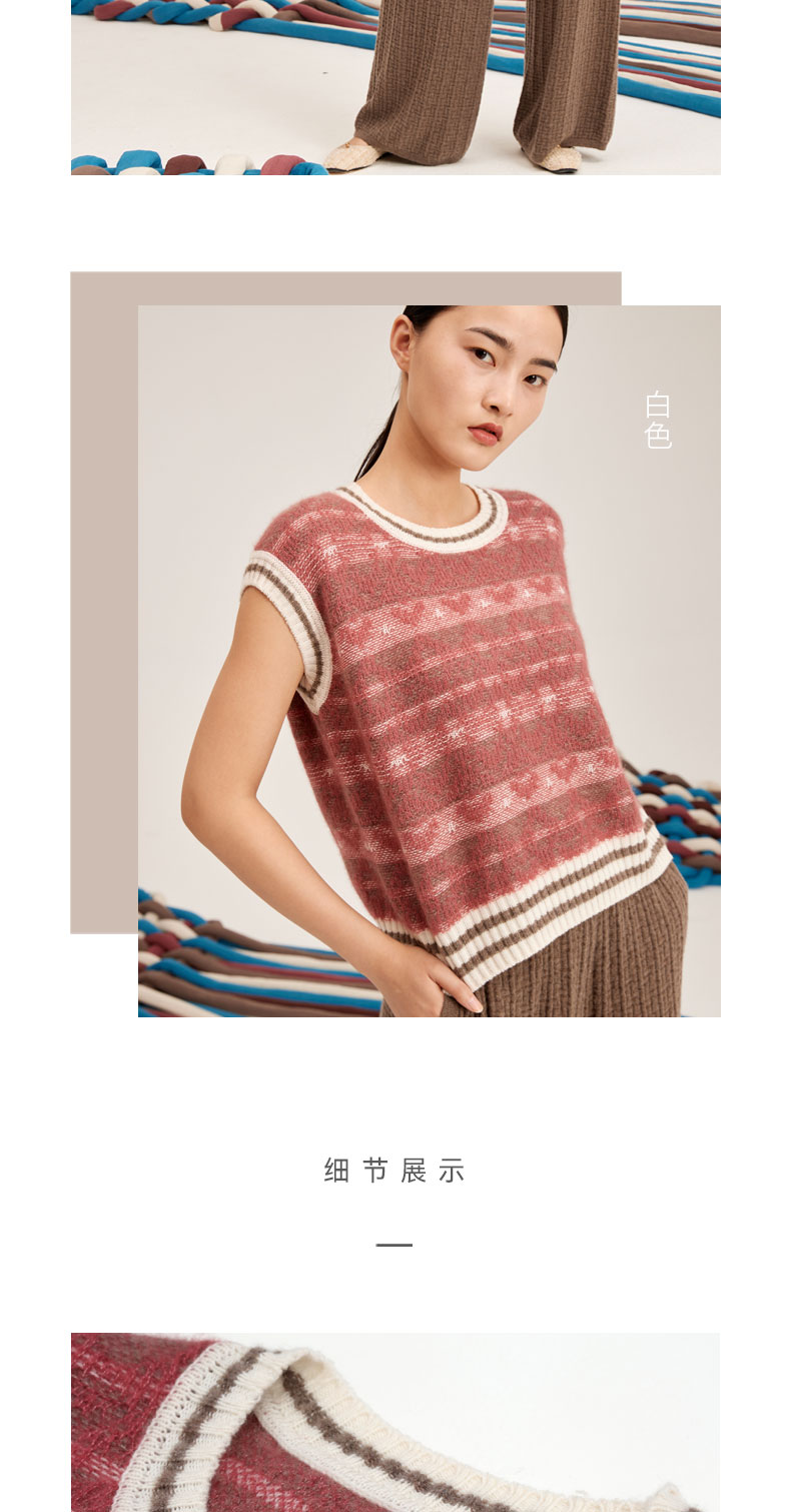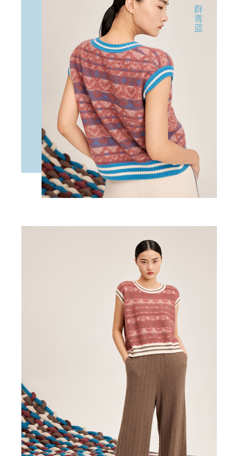 羊绒桑蚕丝提花圆领无袖套衫SJF95W515K