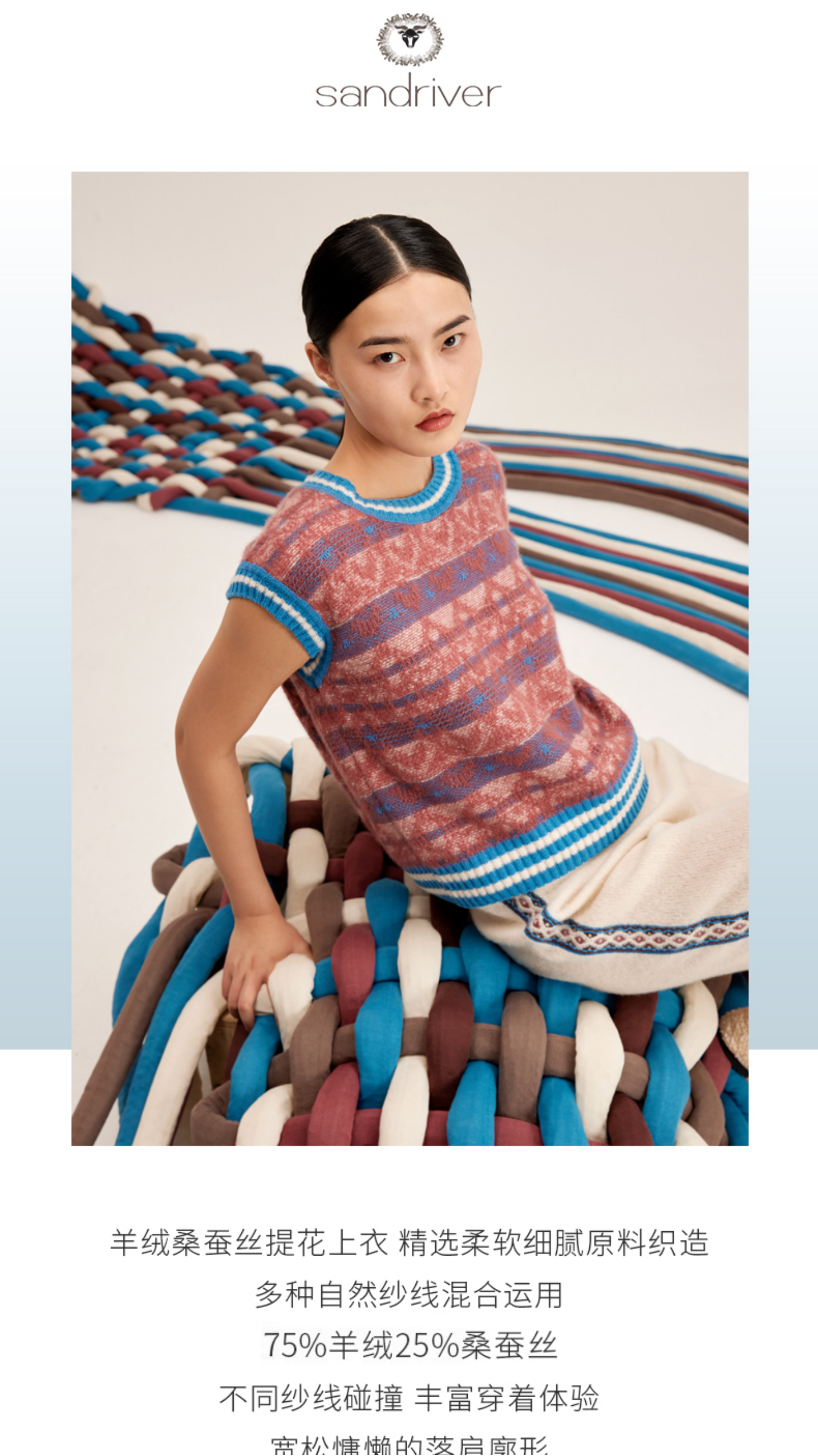 历年在巴黎时装周亮相,享誉世界的艺术羊绒品牌[Sandriver 沙涓]由羊绒布道者郭秀玲女士创立。阿拉善自有牧场纯种羔羊绒,日本国宝设计师小筱顺子,上海自有基地精工细作。承载羊绒情怀,坚持匠人品质。