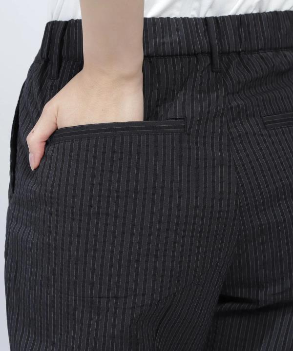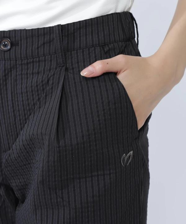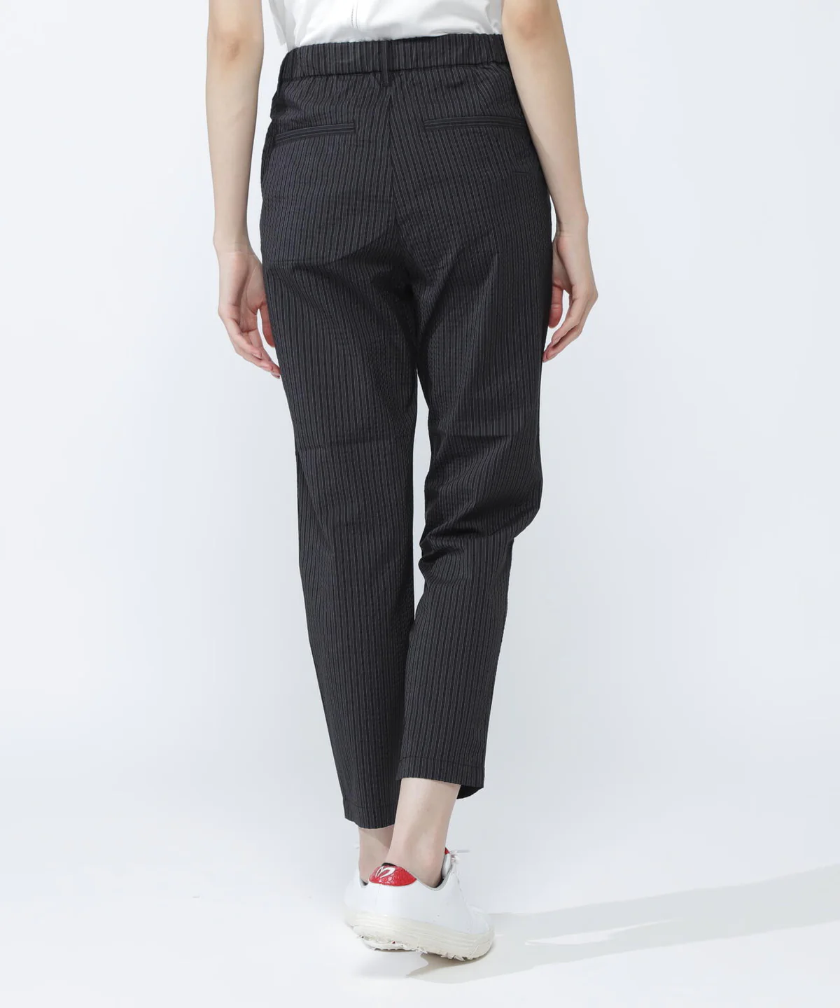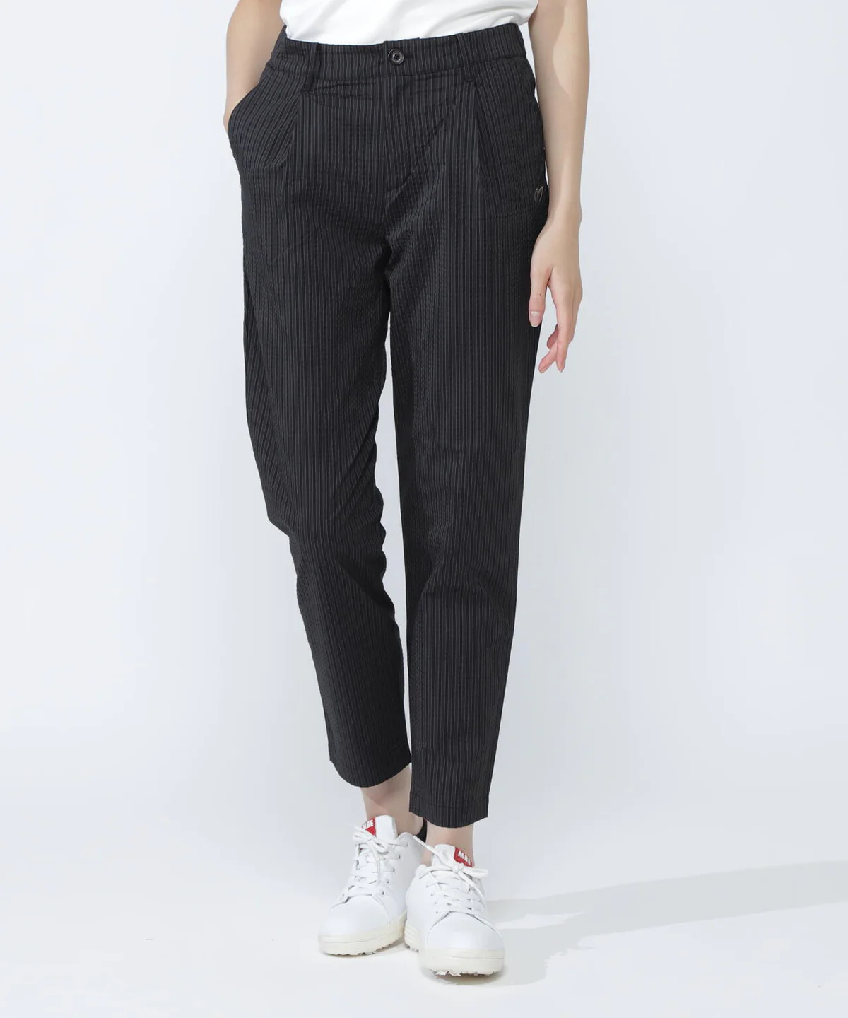这是一条带有单褶设计、腰部略有宽松空间的条纹长裤。 采用触感舒适的弹力聚酯棉面料,打造出修身利落的版型,是一条极具时尚感的裤子。腰部部分采用松紧设计,实现了舒适的穿着体验。它有着可适配商务场景的利落风格,从高尔夫运动到日常穿搭,都能让你舒适穿着。裤袋下方的M标识,成为了一处不经意的点睛之笔。 具体尺寸: 0/S:腰围70cm / 臀围90cm / 裤长92cm 1/M:腰围74cm / 臀围94cm / 裤长94cm 2/L:腰围78cm / 臀围98cm / 裤长95cm (Tip:尺寸均为手工测量如有1-3cm误差属正常情况) 外单保真,部分三标不齐(领标,洗标,吊牌),介意者慎拍!