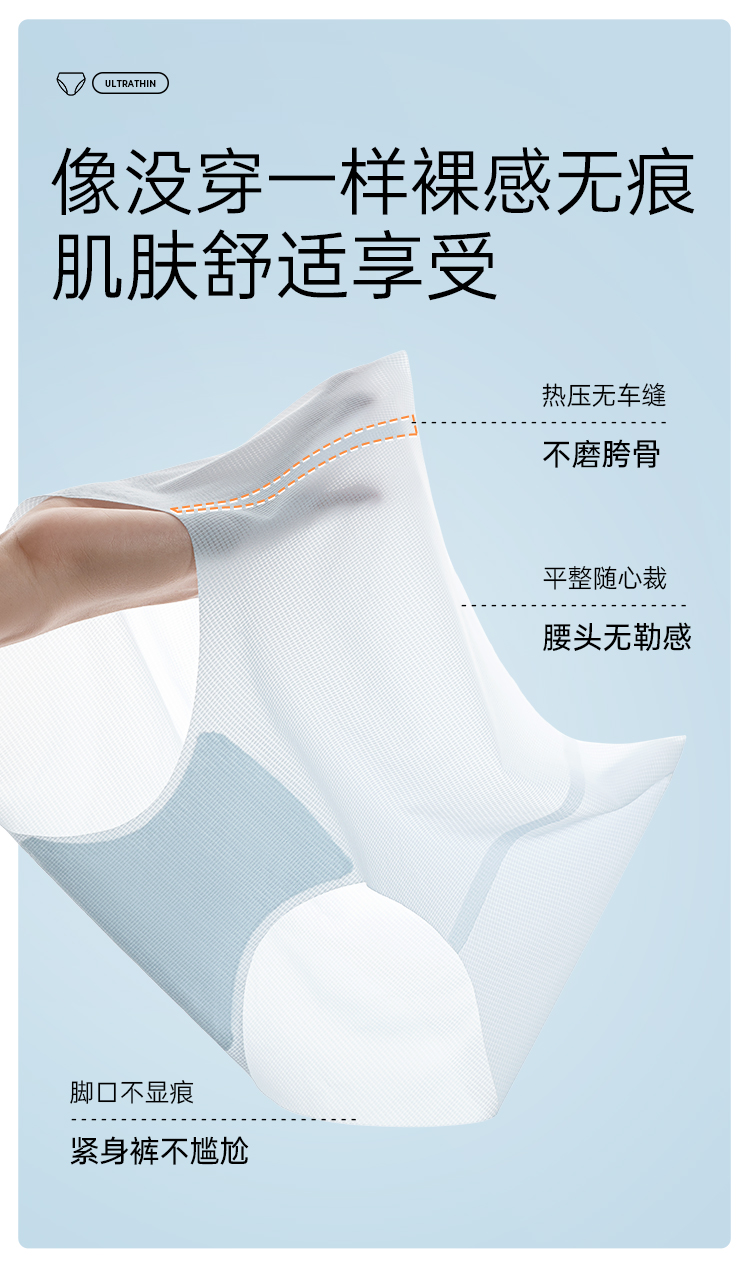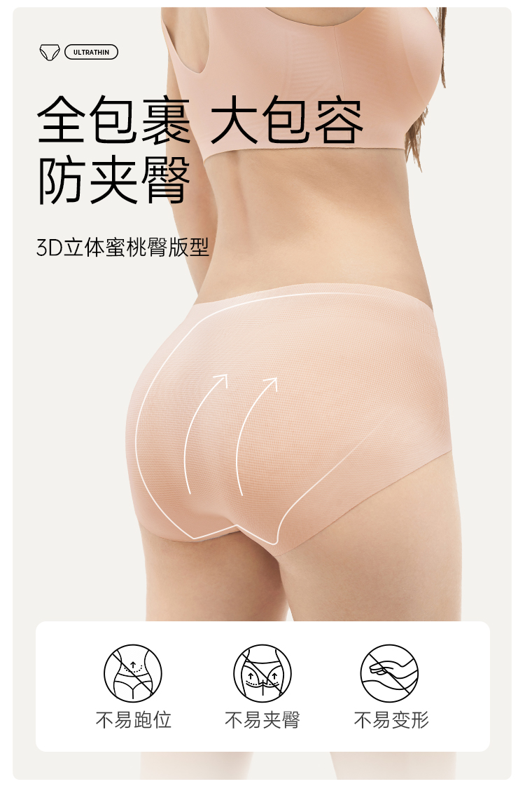 奶糖派【超弹内裤3条装】无痕超弹透气简约三角短裤提臀不卡档