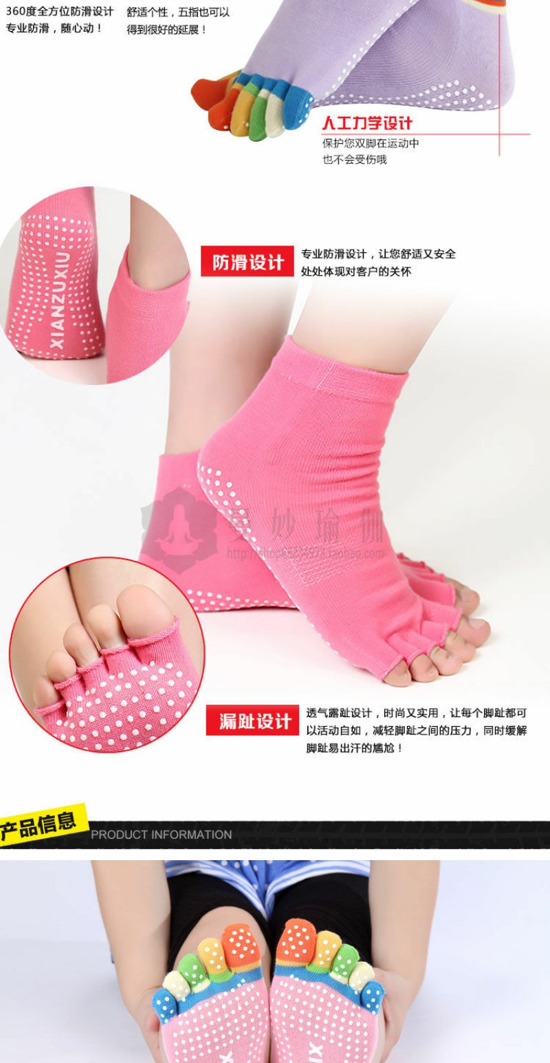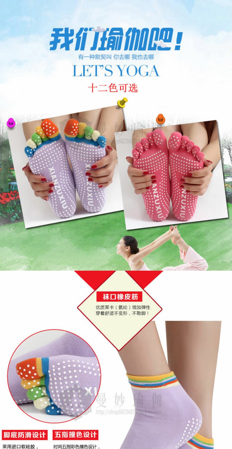 【3双装】健身空中瑜伽袜子蹦床硅胶防滑五指袜