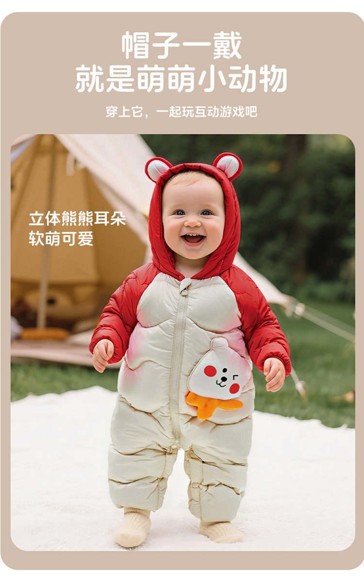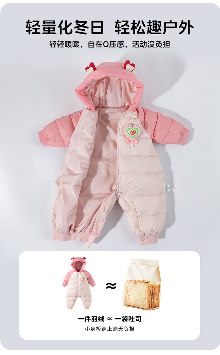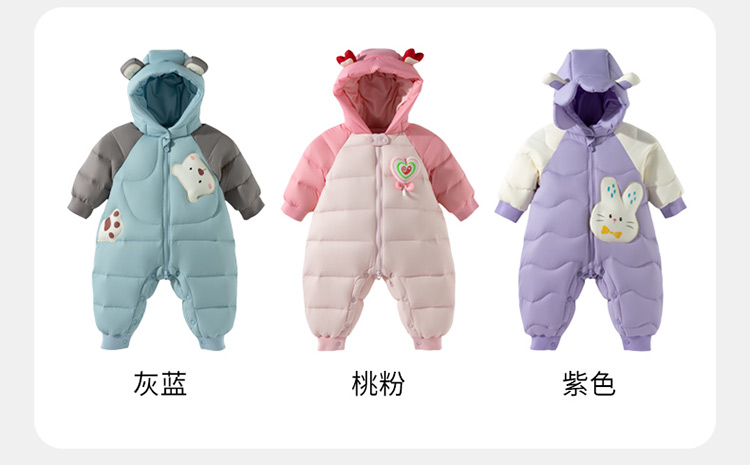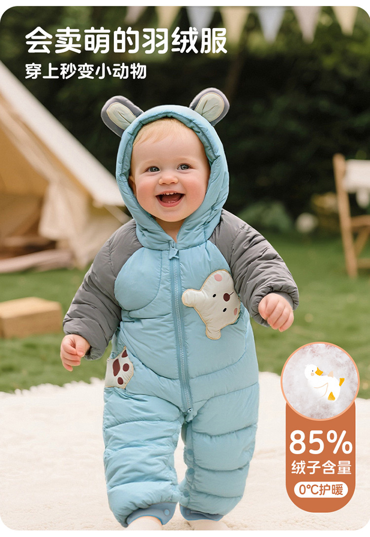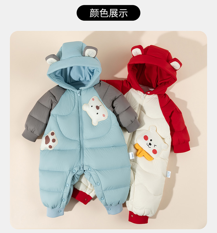 羽绒连体衣婴儿羽绒服宝宝冬装外出防风保暖连帽哈衣爬服ZB4EL015