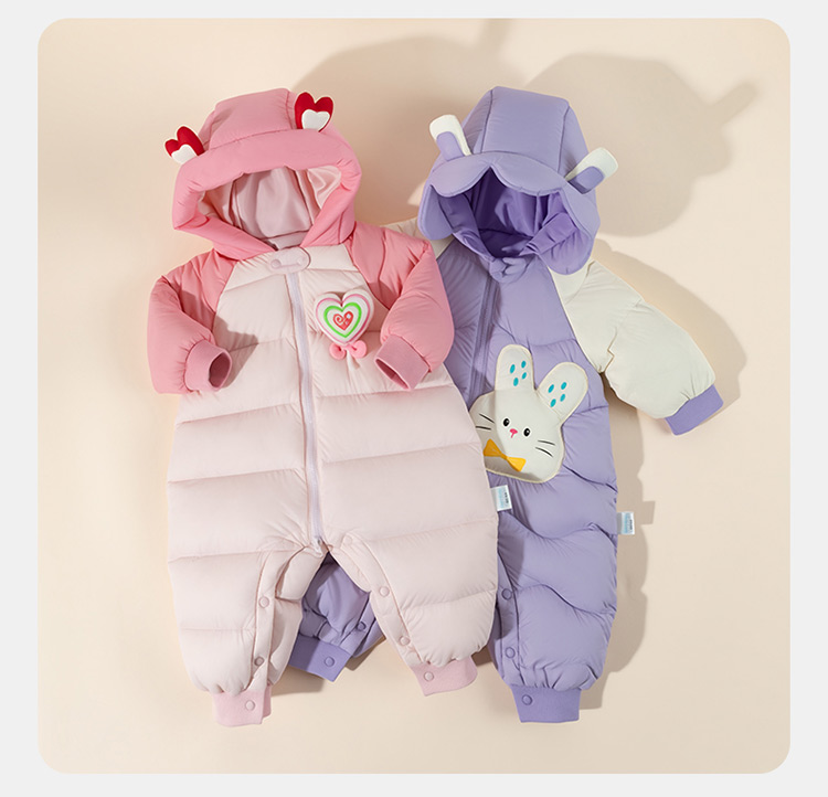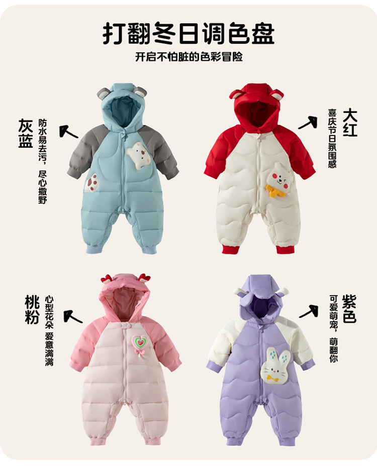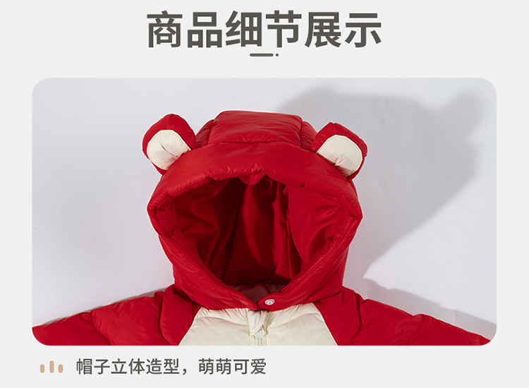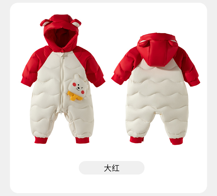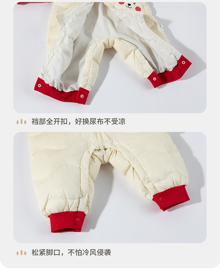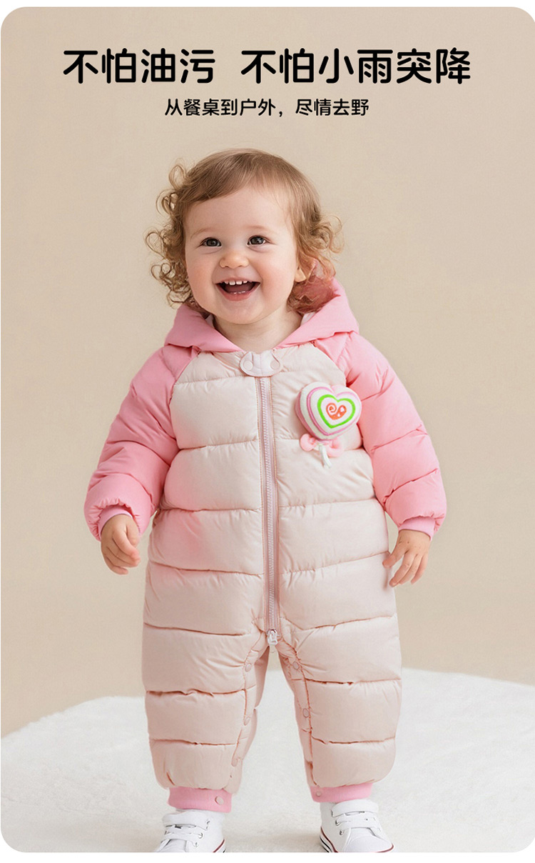 羽绒连体衣婴儿羽绒服宝宝冬装外出防风保暖连帽哈衣爬服ZB4EL015