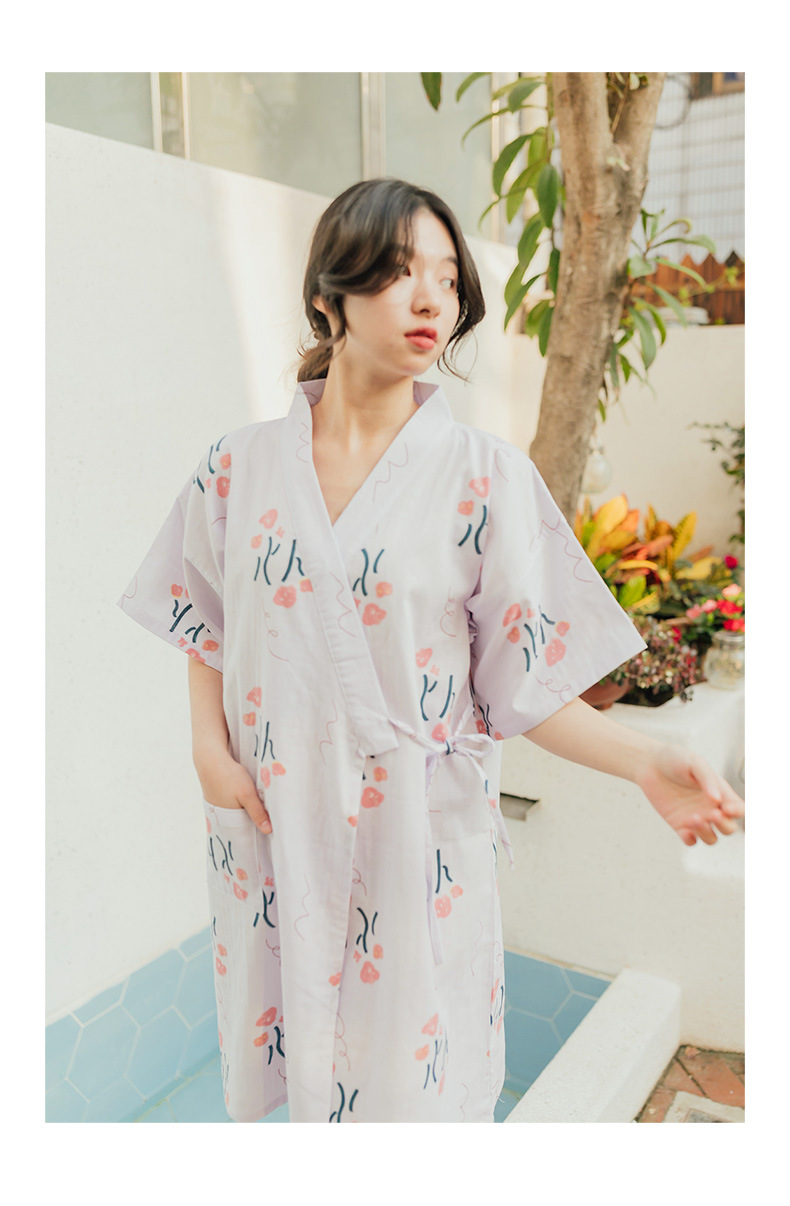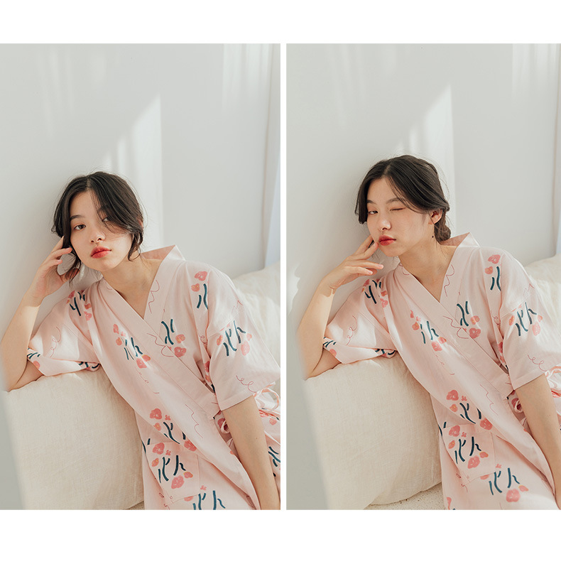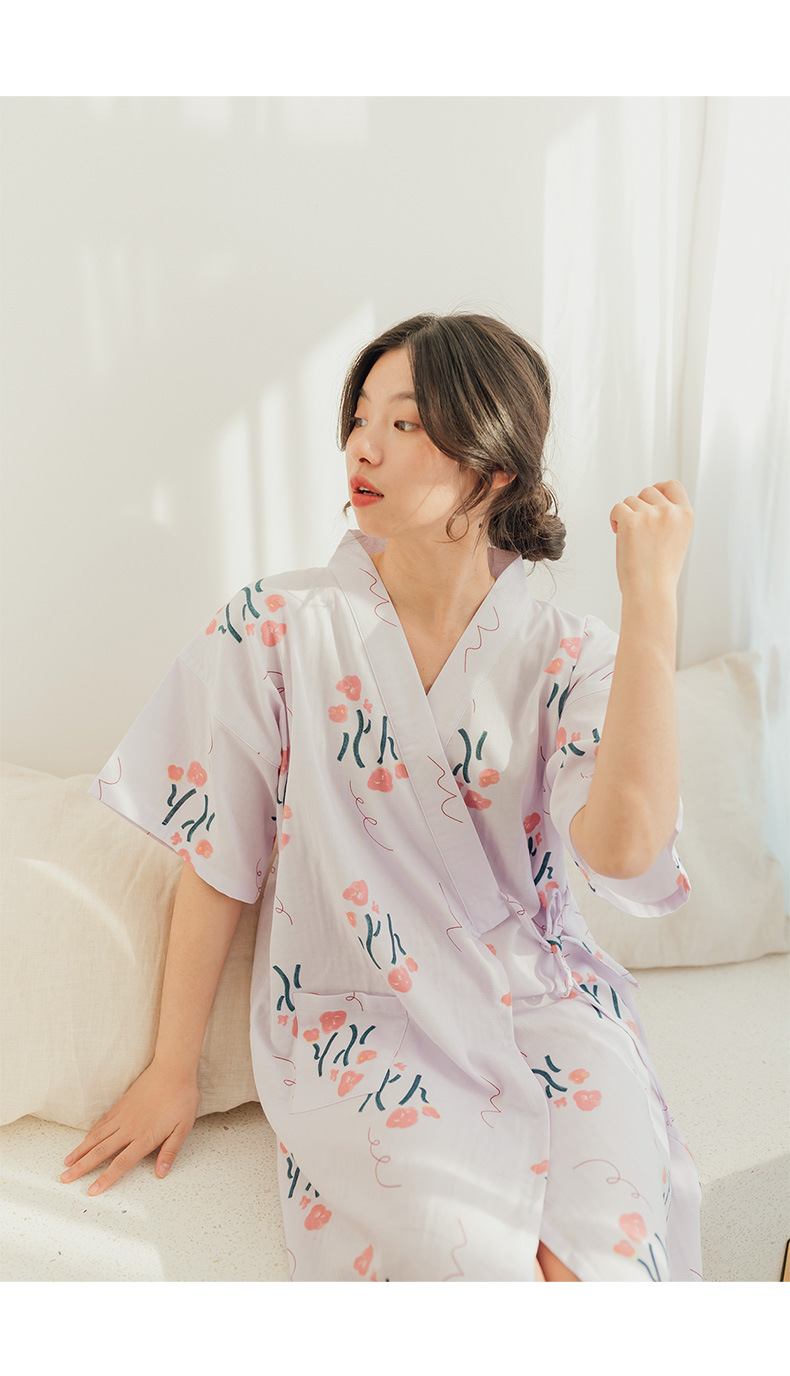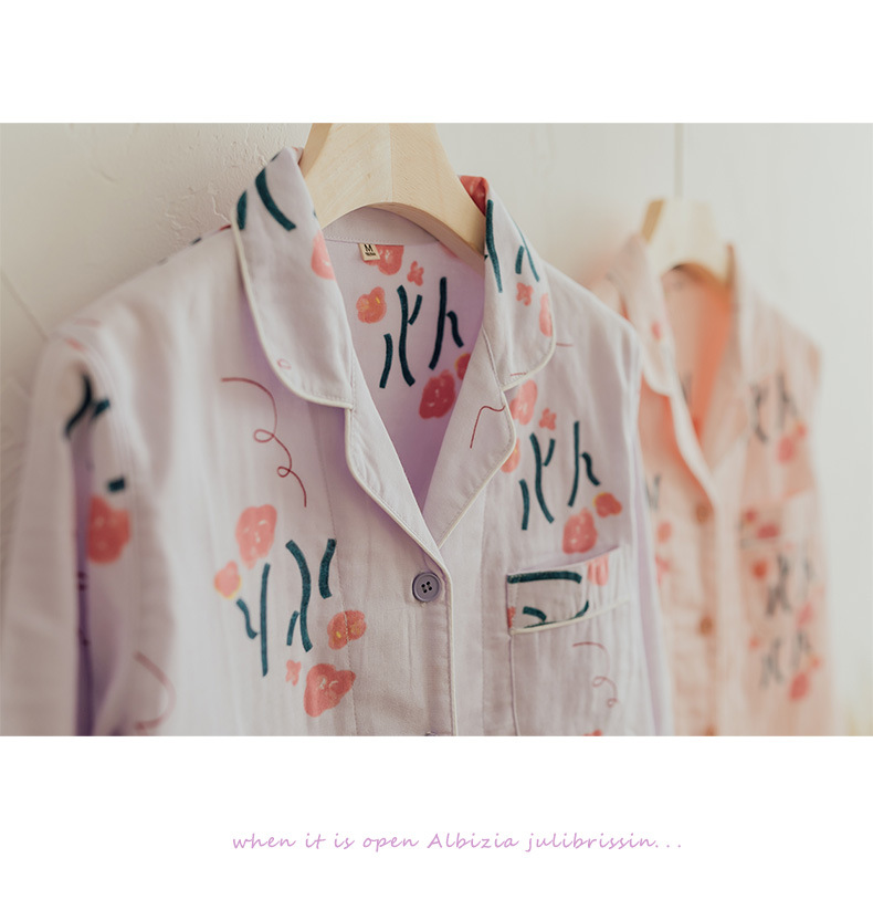 【花开有时】纯棉纱布睡衣 长袖两件套 短袖睡裙 宽松和服睡衣 汗蒸家居服