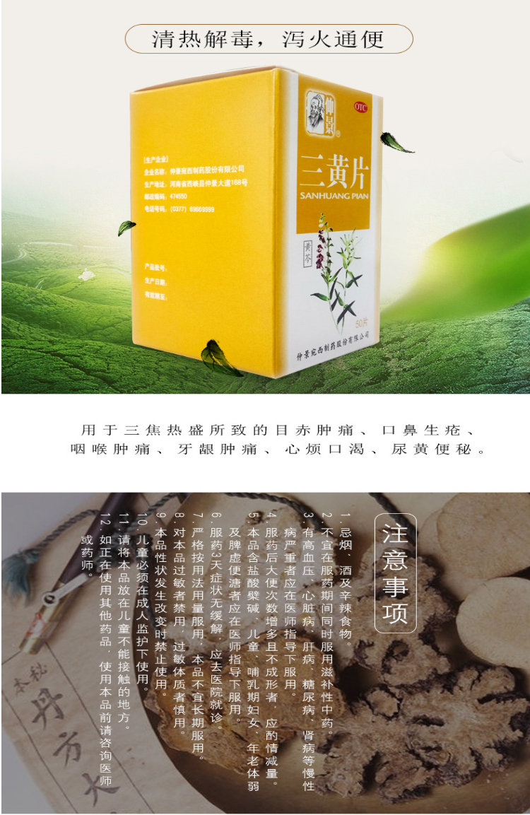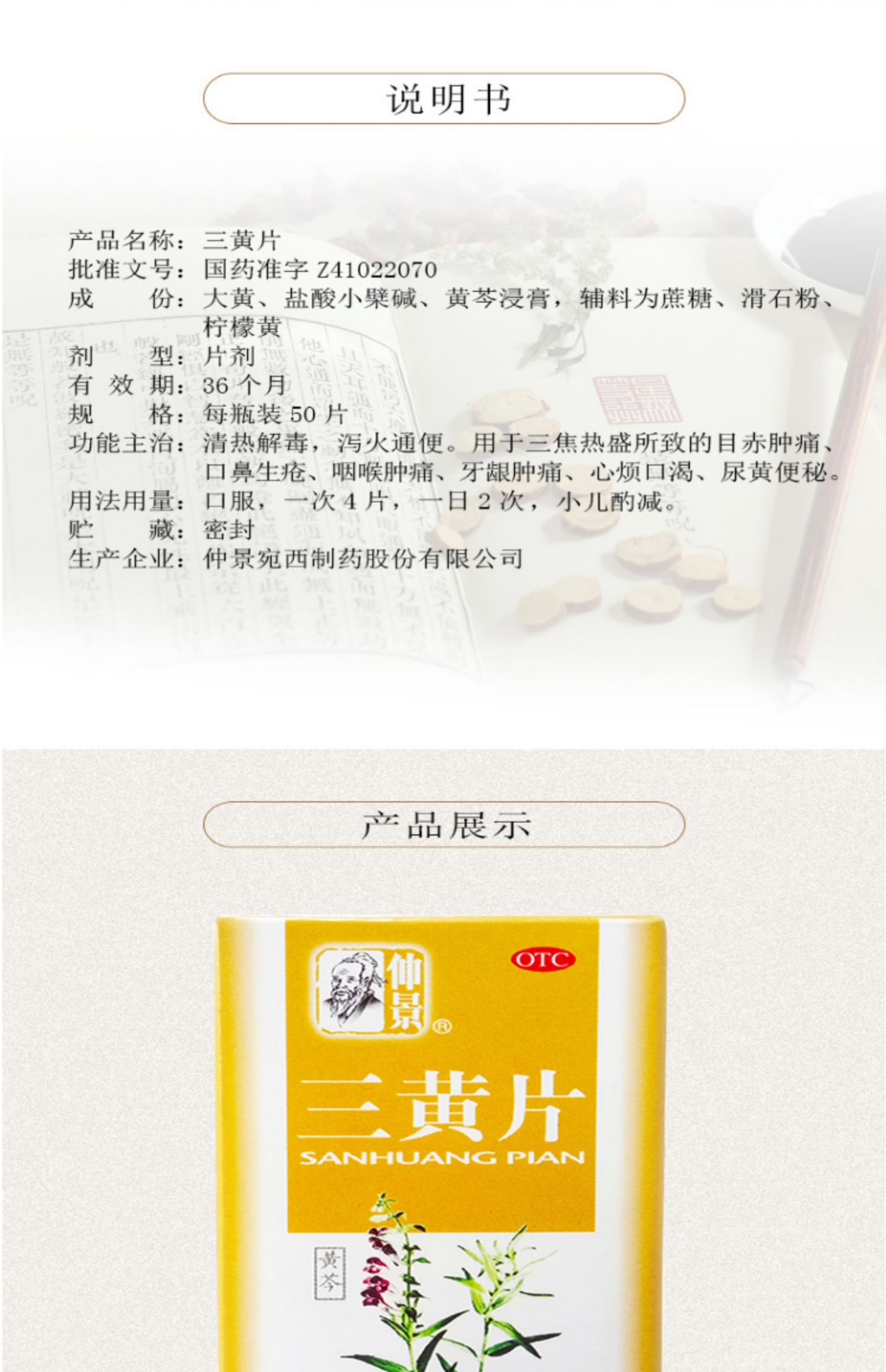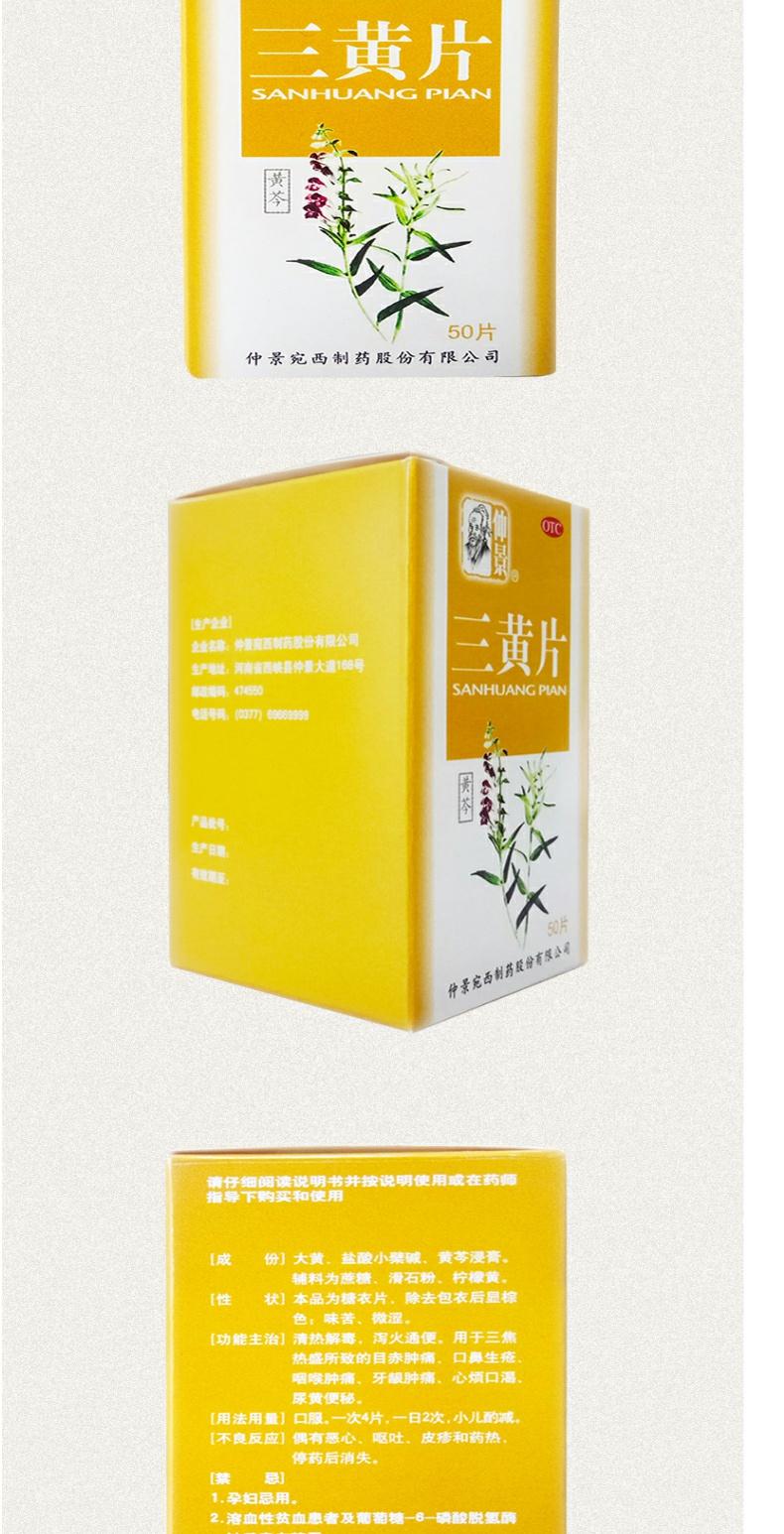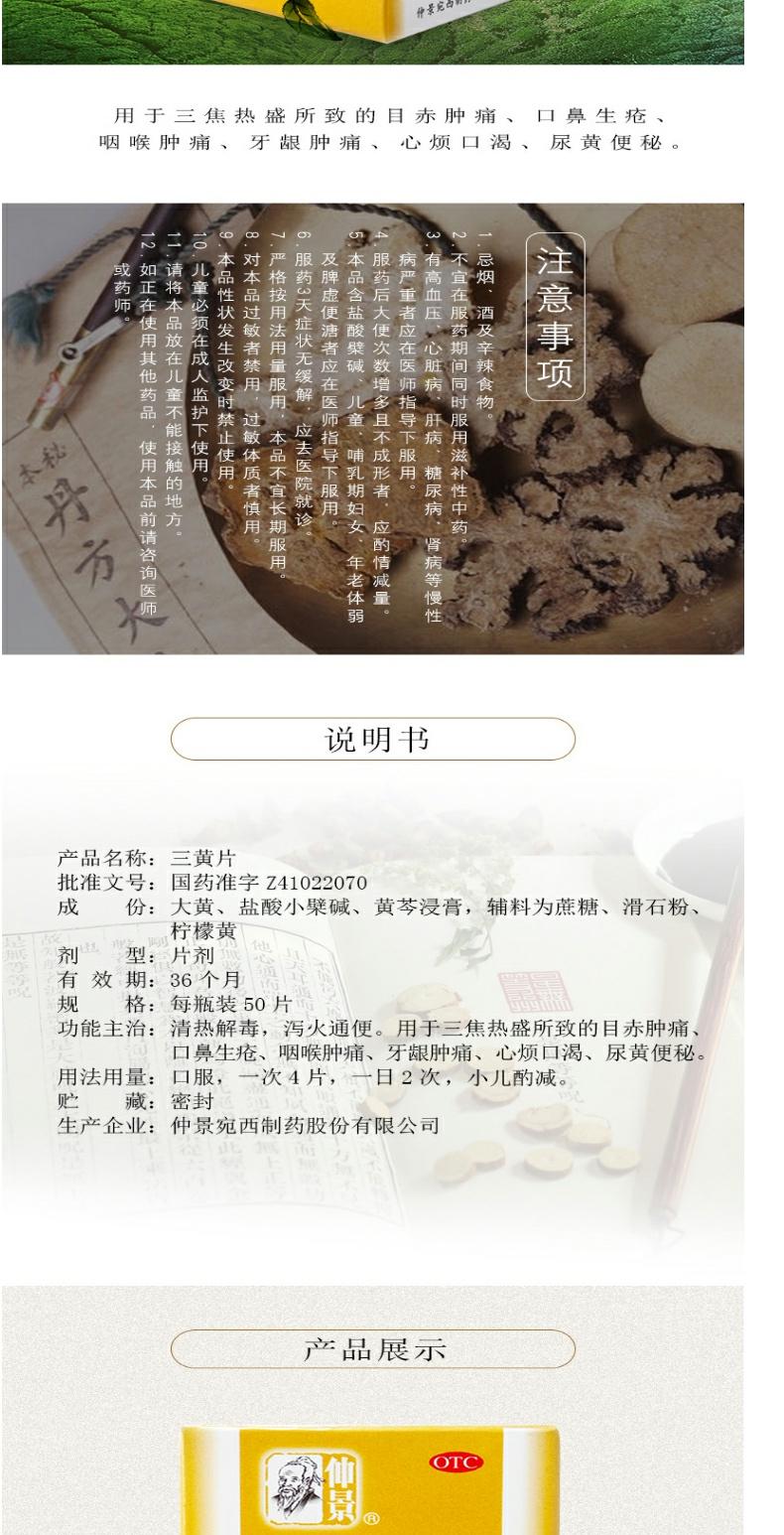 2盒】仲景三黄片50片清热解毒泻火通便咽喉肿痛牙龈肿痛便秘