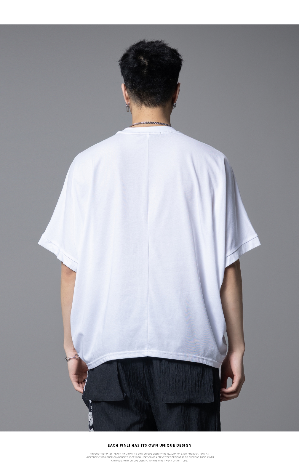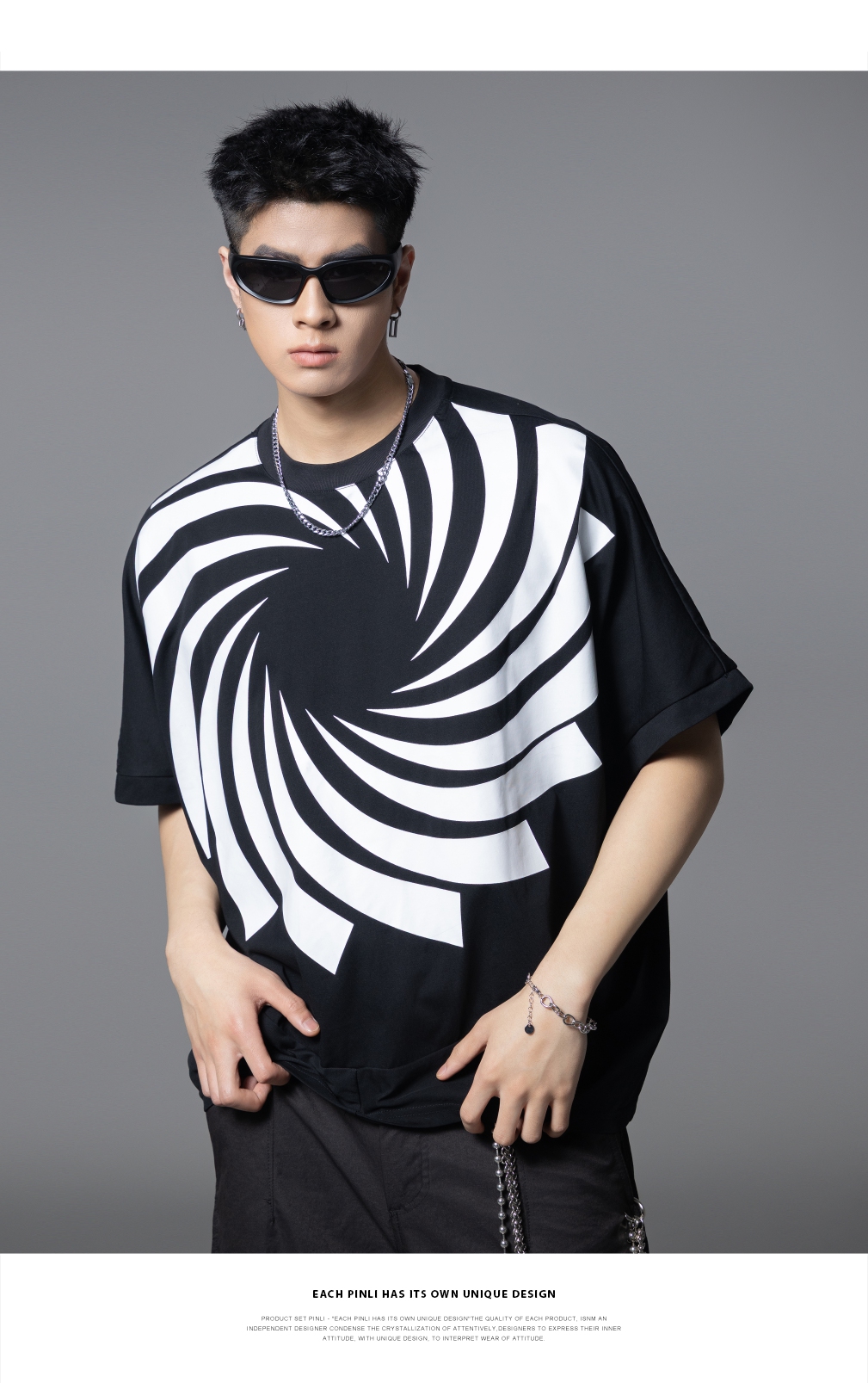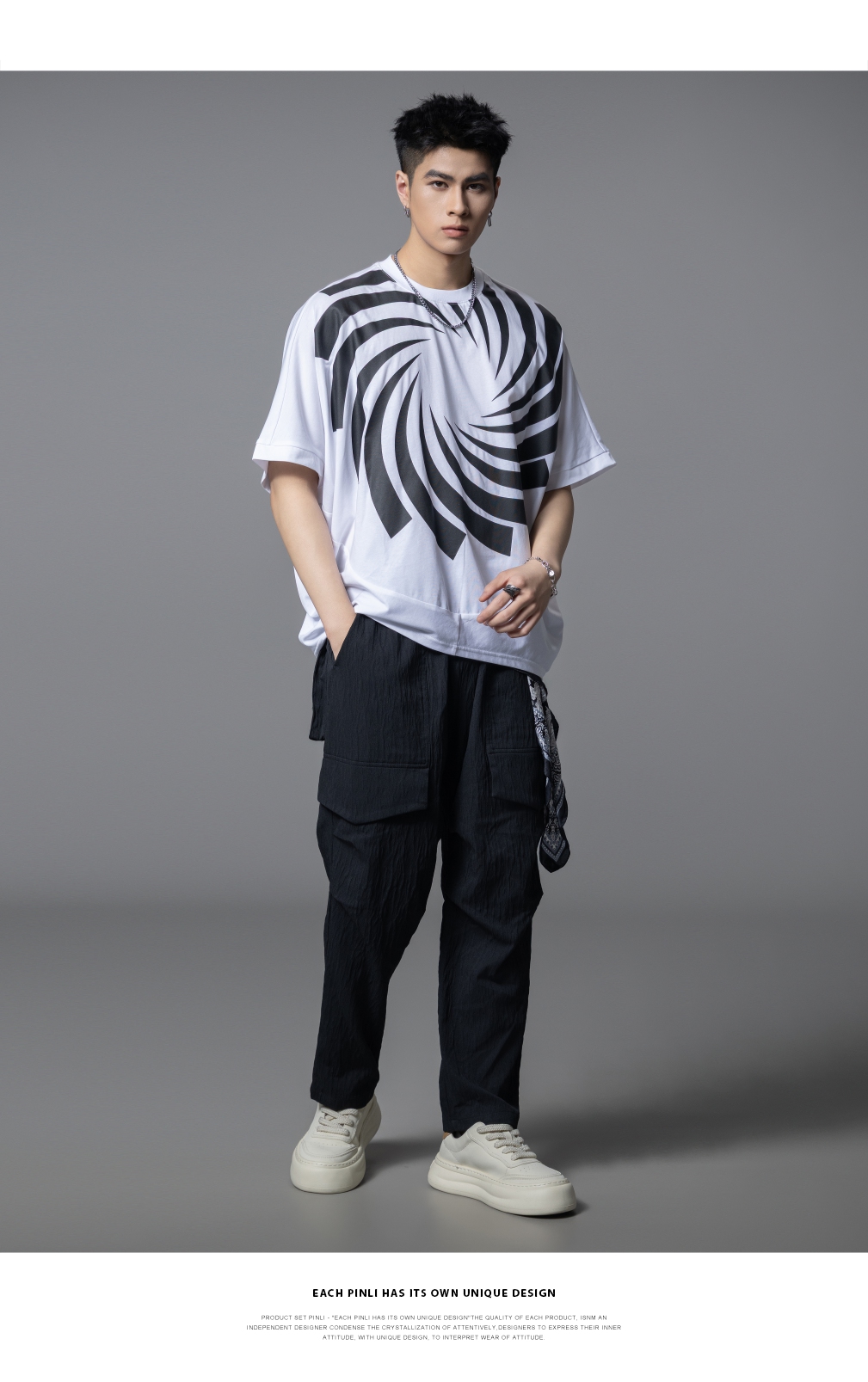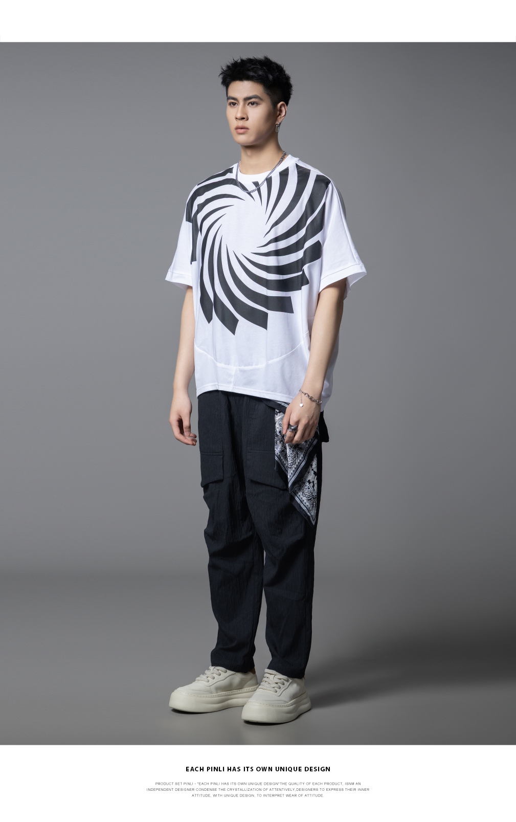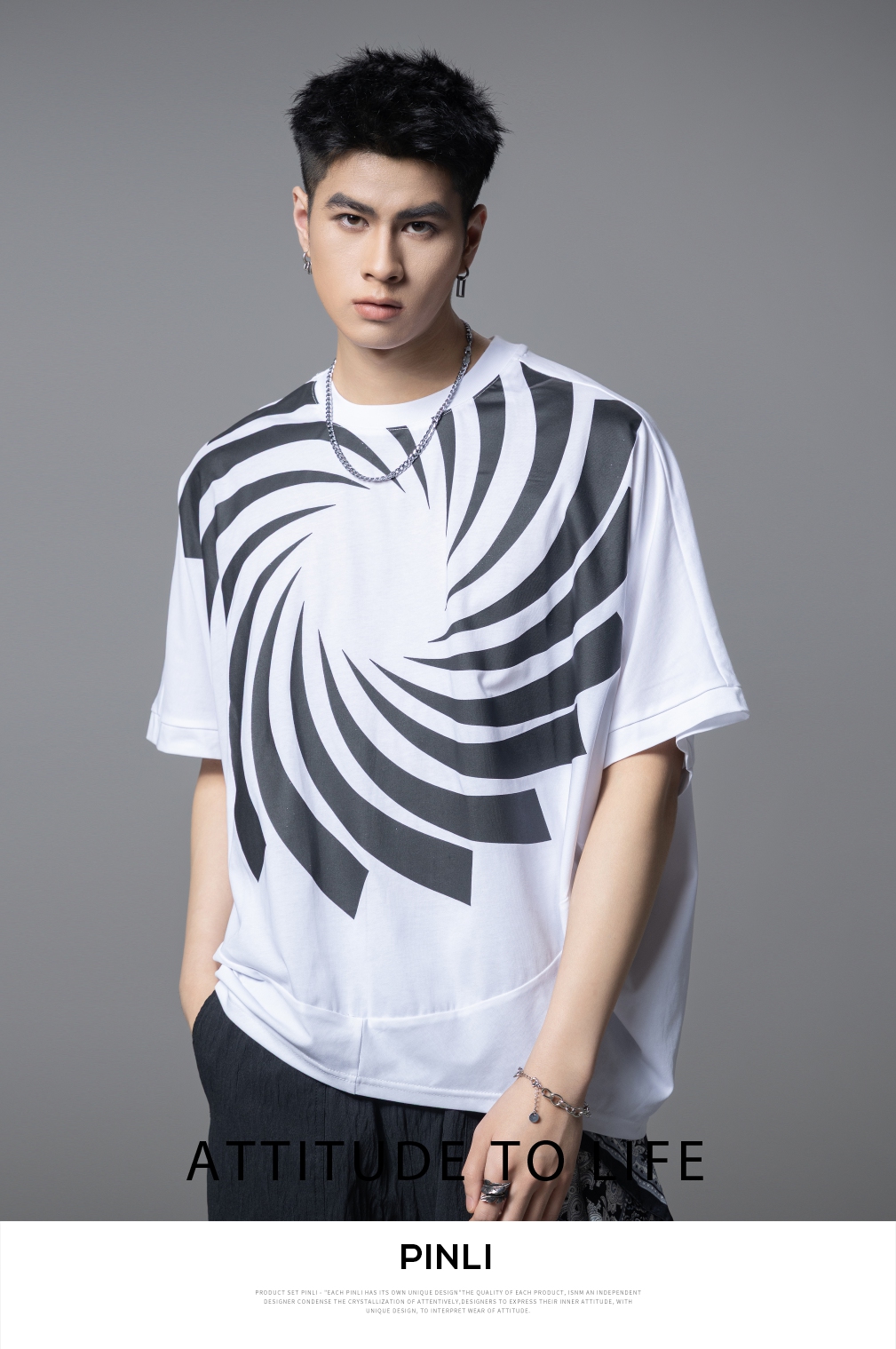PINLI品立2025夏季新款潮牌手工印花短袖T恤男士小众宽松休闲上衣B252111029