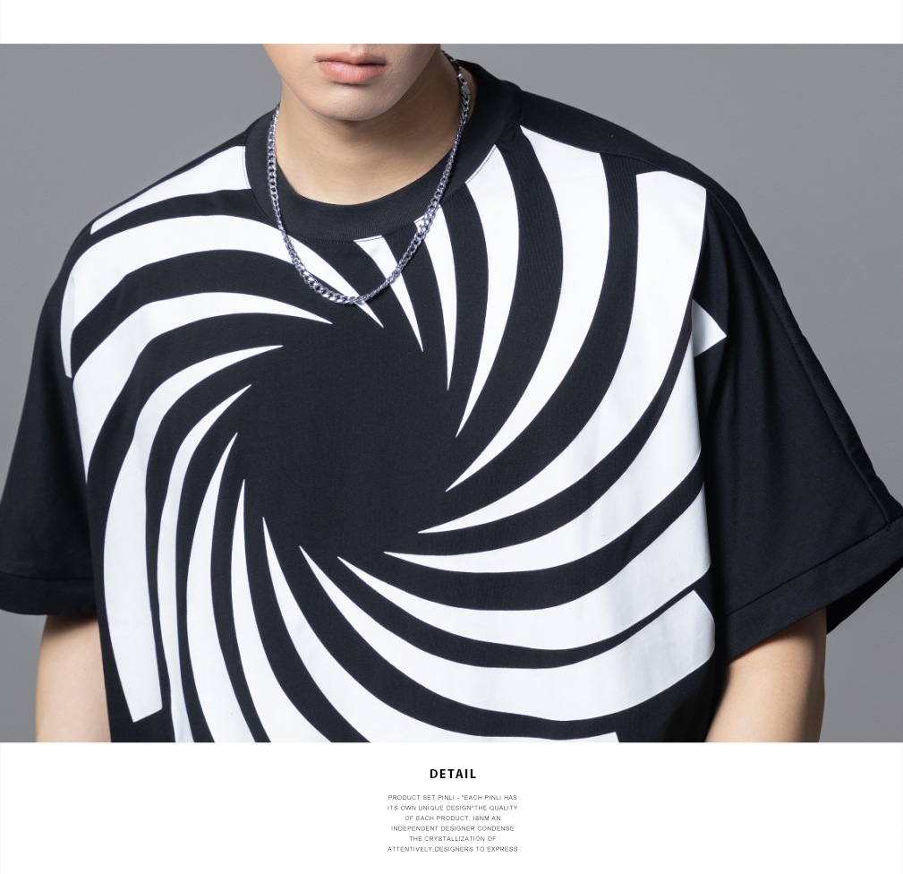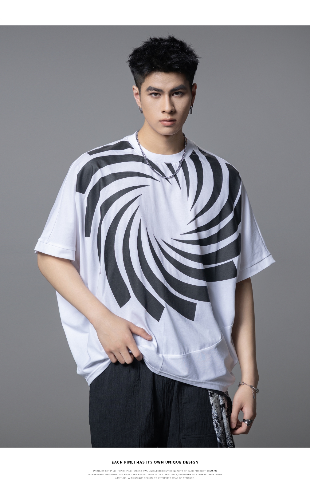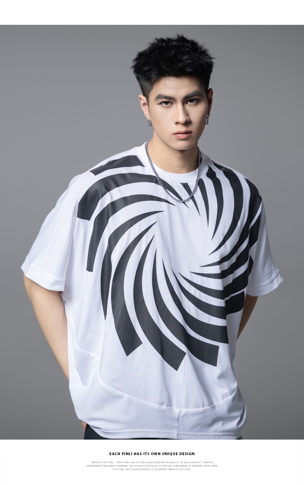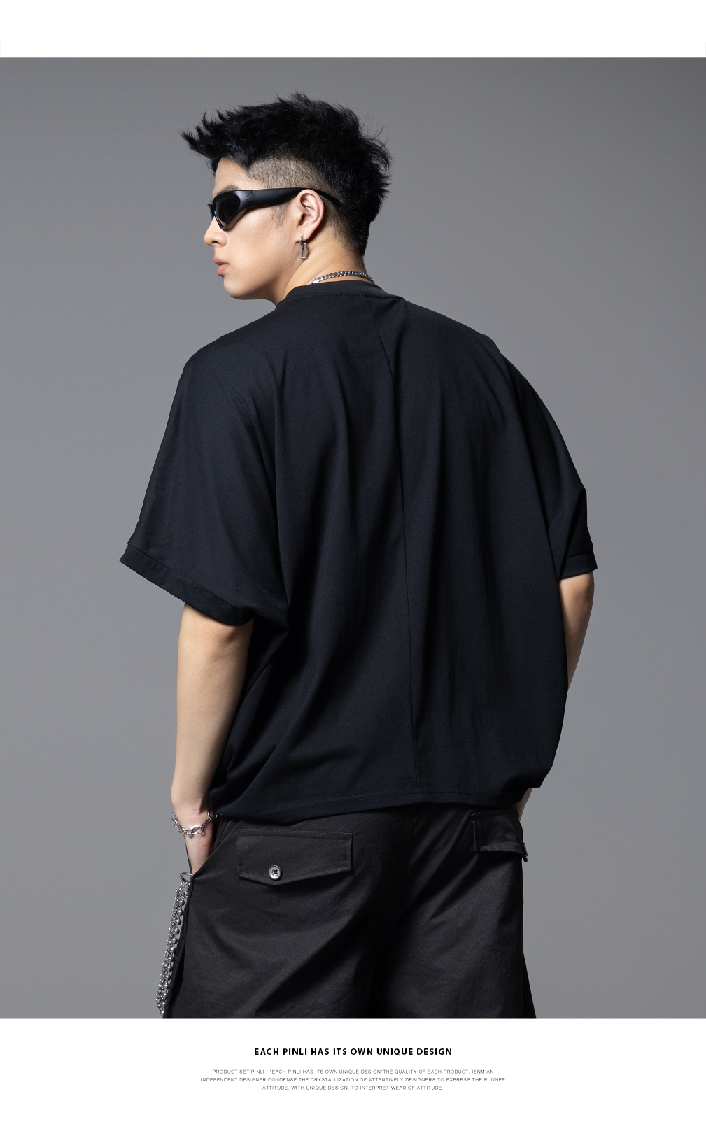 PINLI品立2025夏季新款潮牌手工印花短袖T恤男士小众宽松休闲上衣B252111029