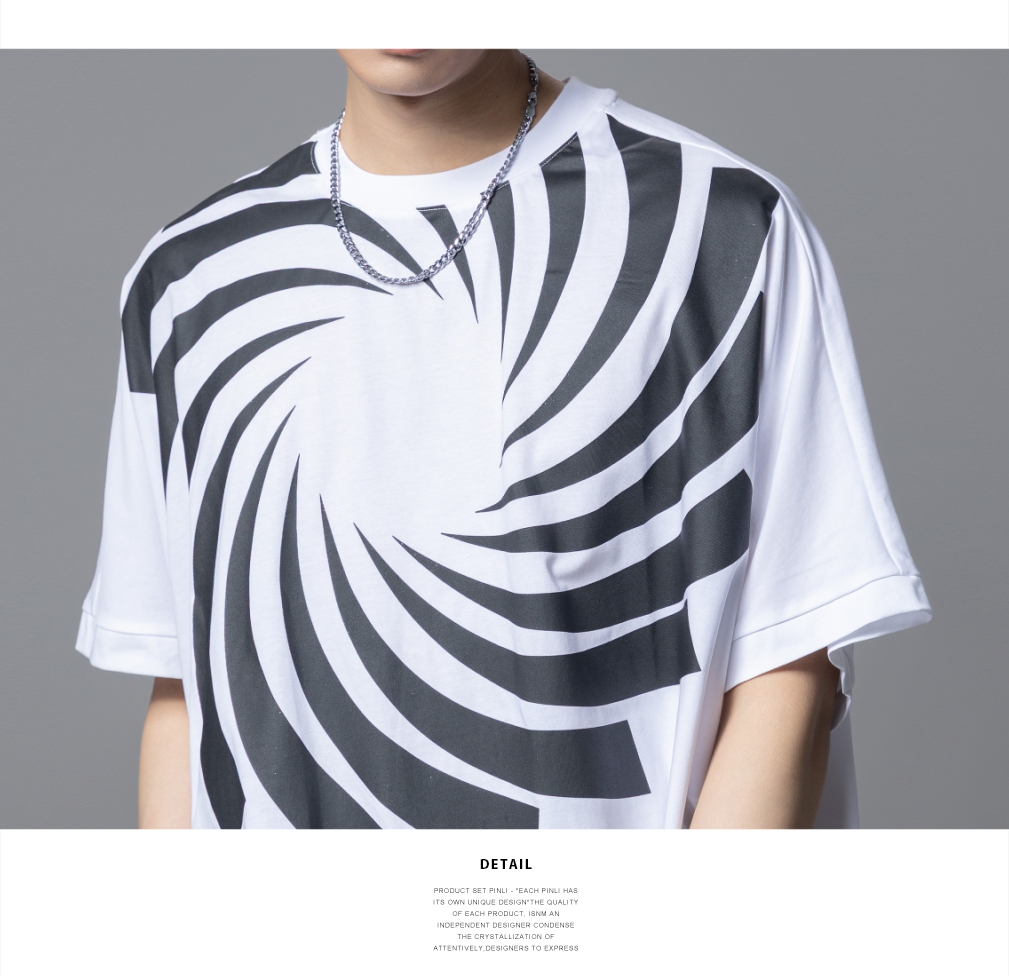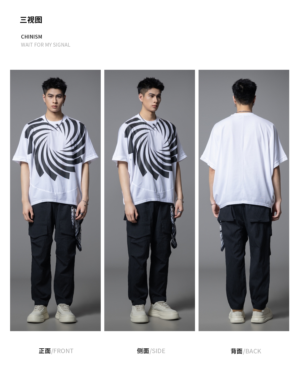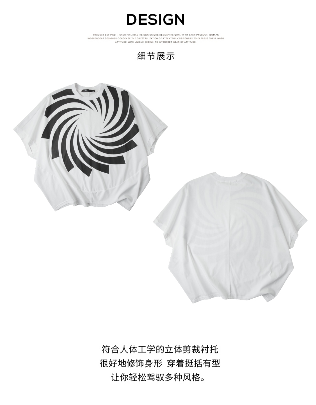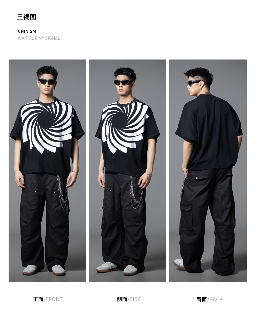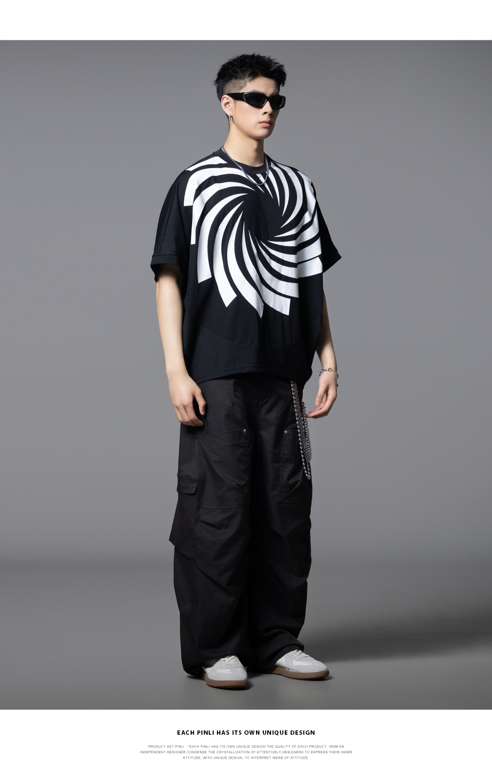 PINLI品立2025夏季新款潮牌手工印花短袖T恤男士小众宽松休闲上衣B252111029