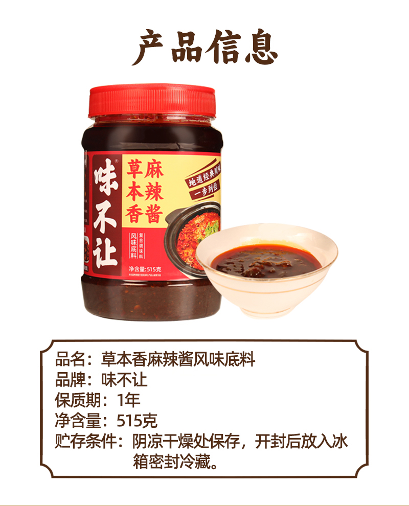 味不让草本香牛油香麻辣酱麻辣火锅调料麻辣底料川菜底料香辣商用