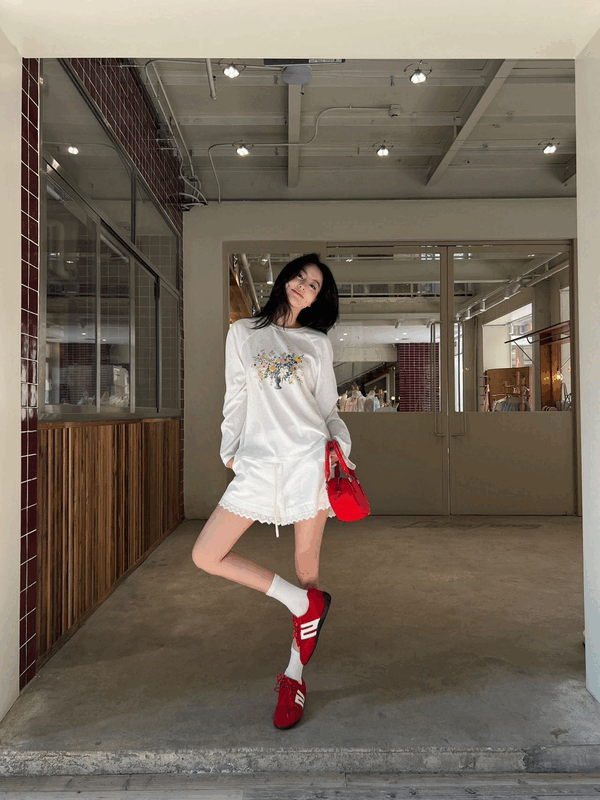 圆领的T恤给人一种莞尔温柔的印象,加上撞色的领口,给人一种跳脱的活跃感。