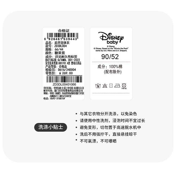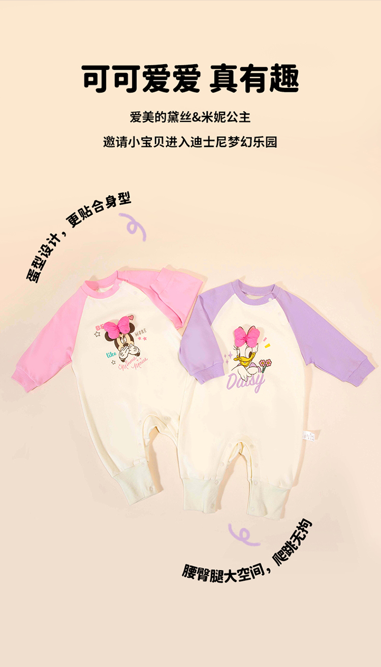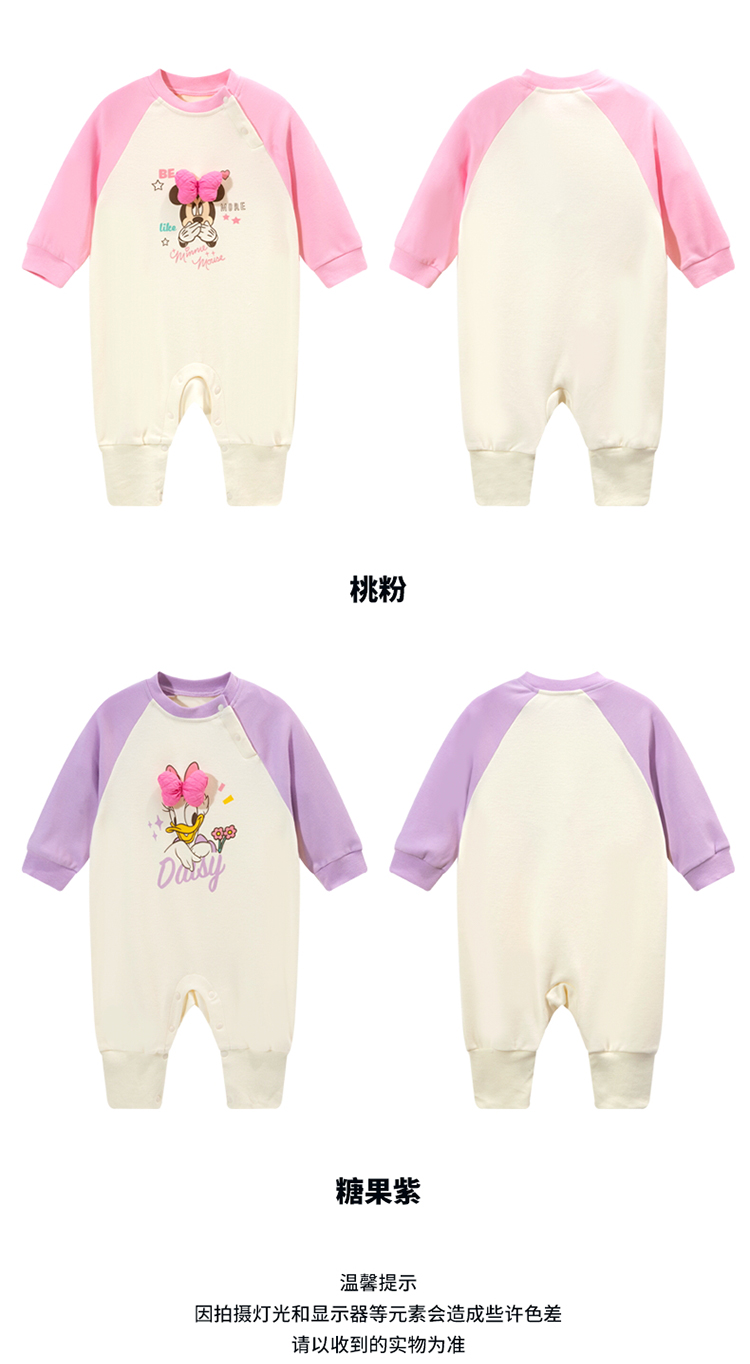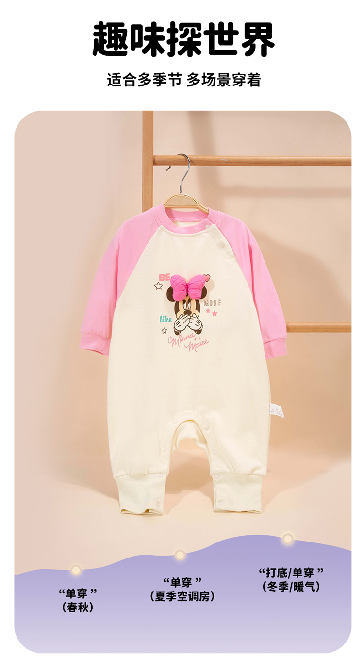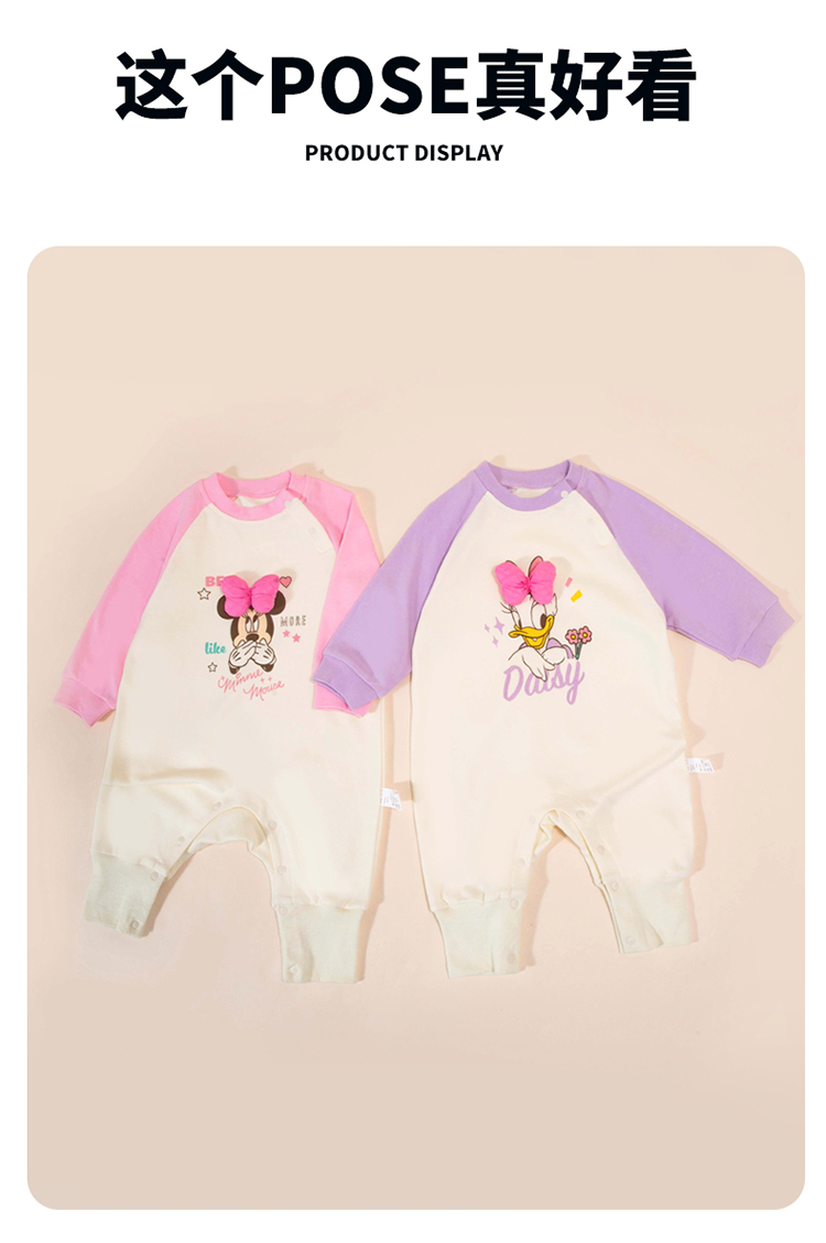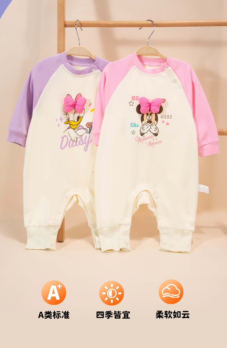迪士尼童装甜心小公主软糯连体衣黛丝米妮肩开女童纯棉连体衣ZD3DL004