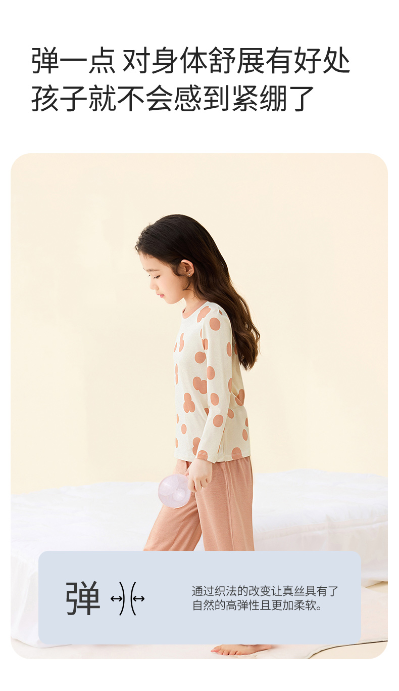 深睡眠蚕丝睡衣】真丝针织睡衣100%桑蚕丝儿童长袖家居服金三塔 BBY037+BBY038