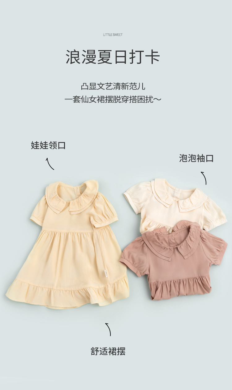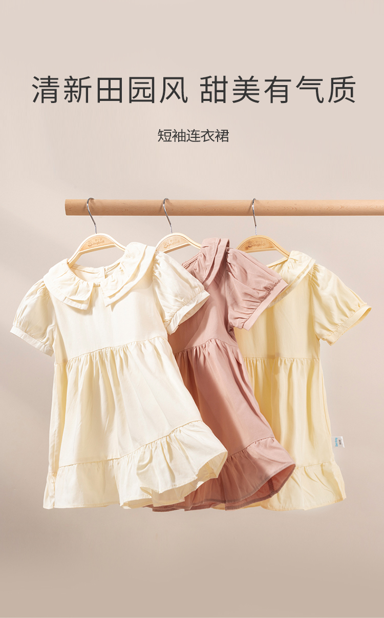 贝贝怡女童小清新田园风连衣裙夏季新品泡泡袖长裙222Q321