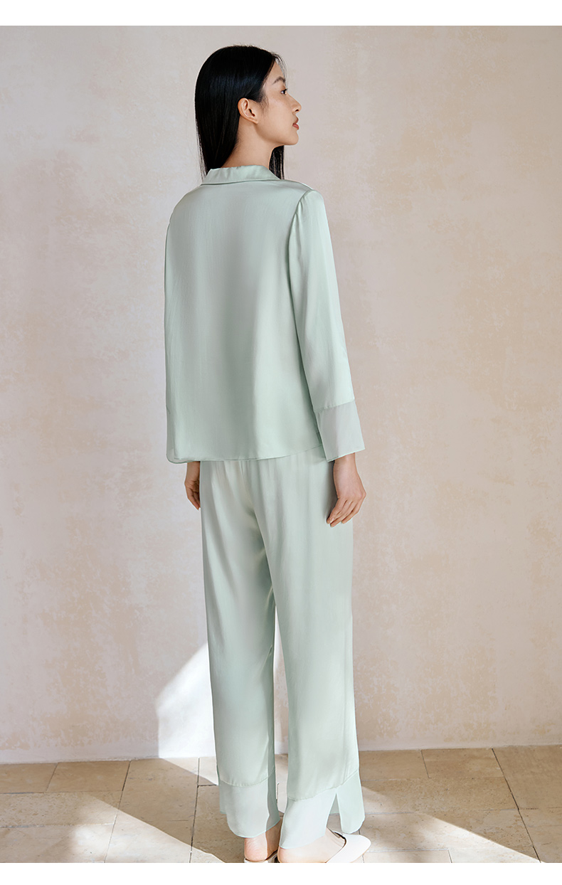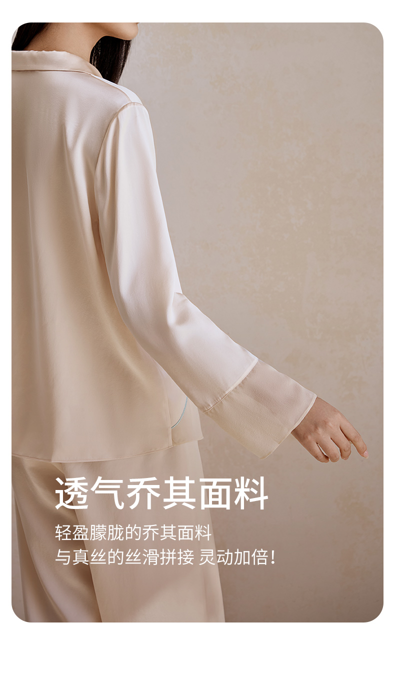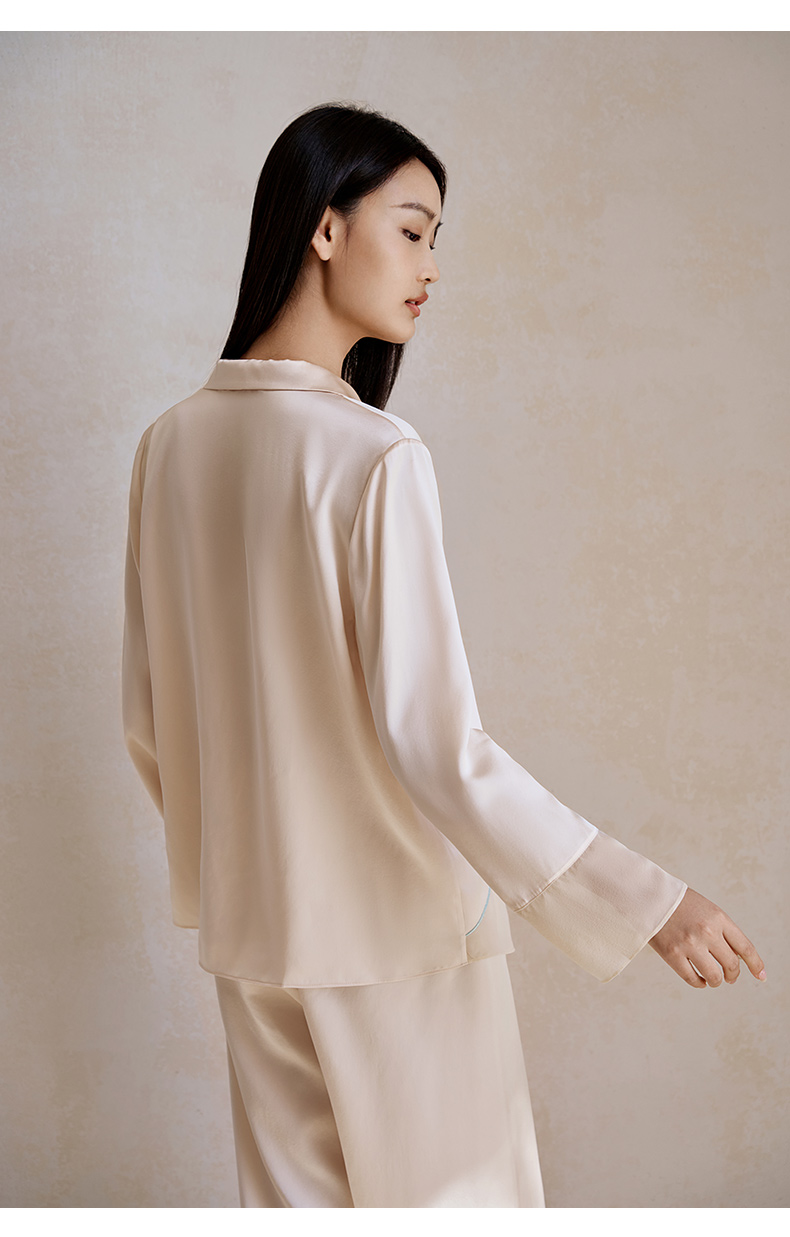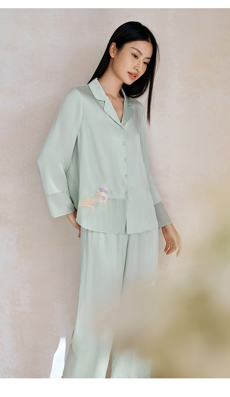 桑蚕丝鸢尾贴布绣】重磅真丝睡衣女100%桑蚕丝衣裤套家居服金三塔 YSFFA208
