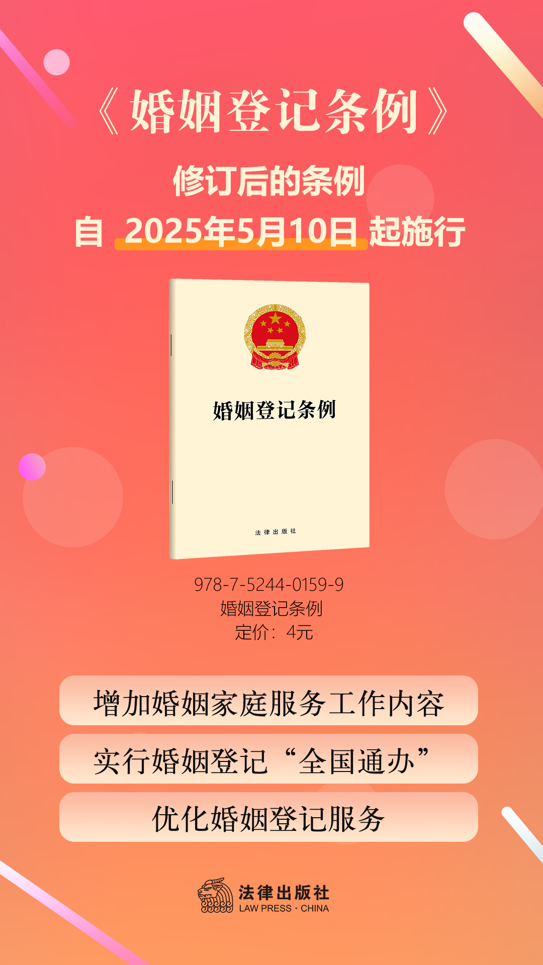 《婚姻登记条例》分为总则、结婚登记、离婚登记、婚姻登记档案和补领婚姻登记证、法律责任和附则等内容,系根据《中华人民共和国民法典》等法律而制定,旨在规范婚姻登记工作,保障婚姻自由、一夫一妻、男女平等的婚姻制度的实施,保护婚姻当事人的合法权益。该《条例》将近年来婚姻登记“跨省通办”等改革试点成果上升为法律制度,为进一步规范婚姻登记工作、优化婚姻登记服务提供了法治保障。