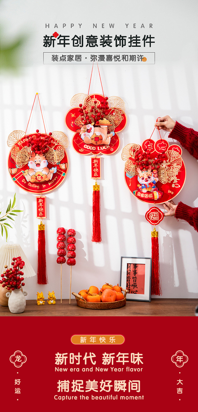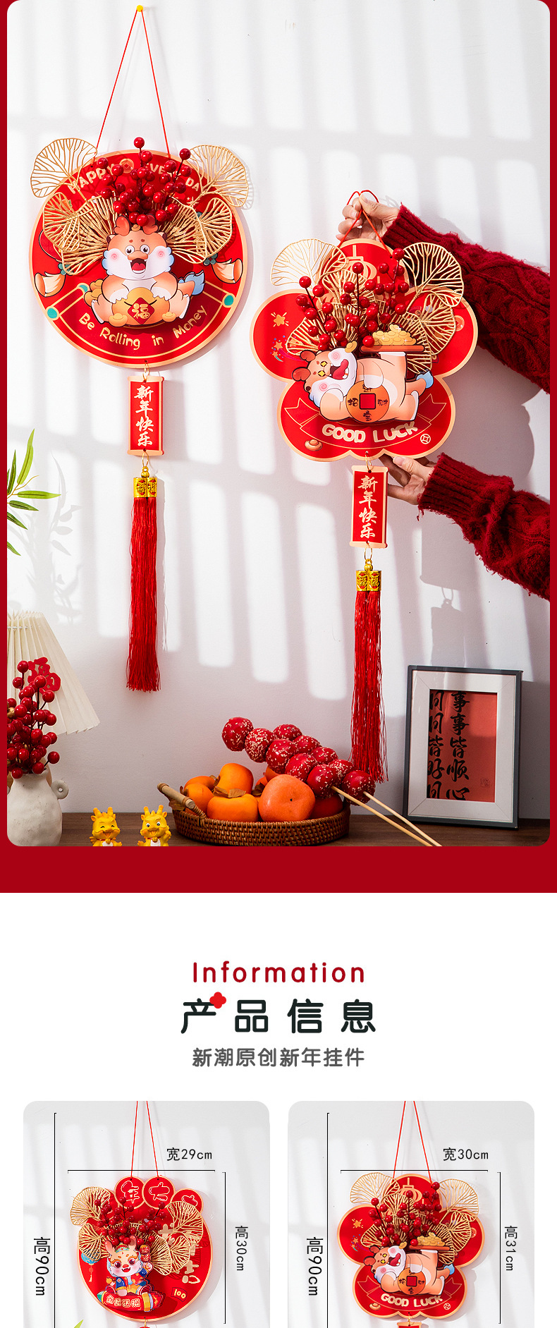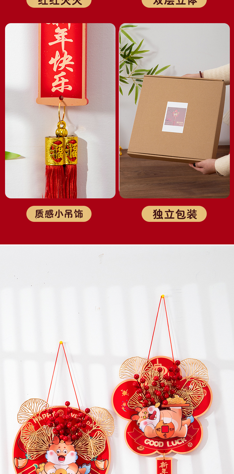 【马年好运❗️国潮发财果挂件】迎新年客厅大门装饰雪弗板福字,双层立体+质感吊饰,精致挂件QQ