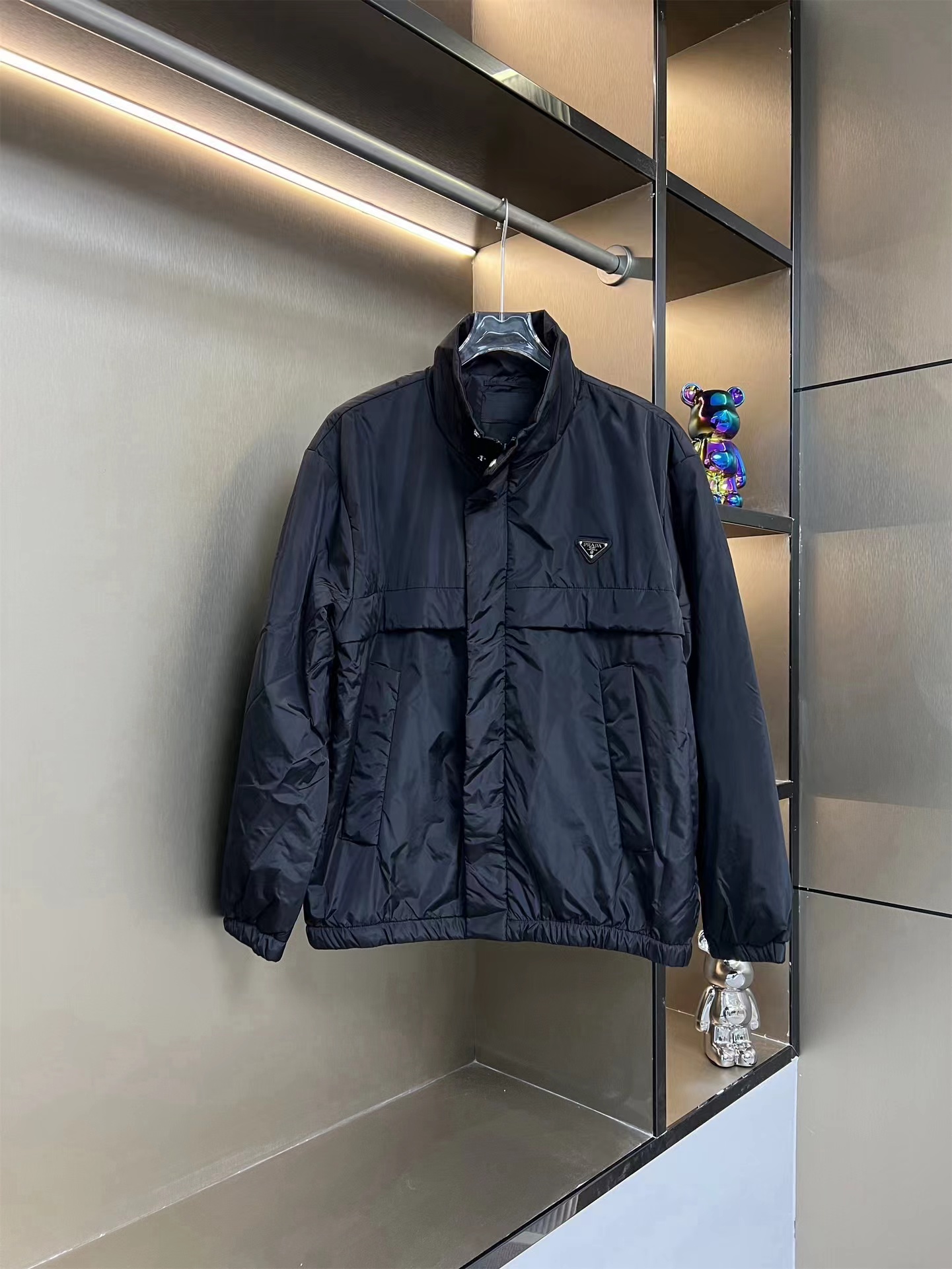 新款三角标情侣休闲棉衣外套 面料锦纶面内同色胸前珐琅三角金属标外套!
