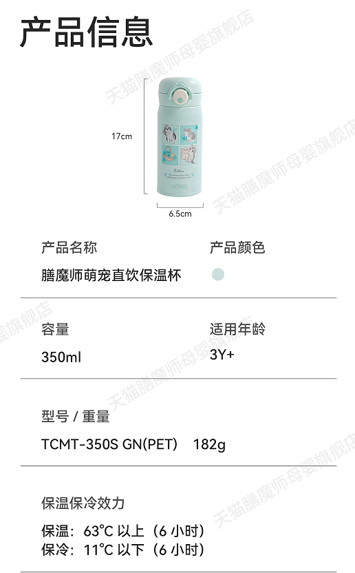 【春上新】9楼母婴生活馆 膳魔师保温直饮杯萌宠系列不锈钢保温杯350mL 吊牌价:258元 活动价:219元