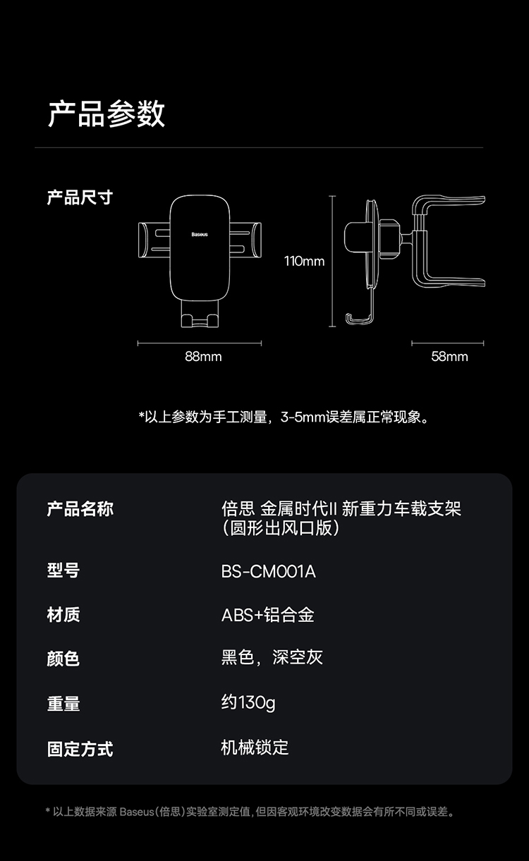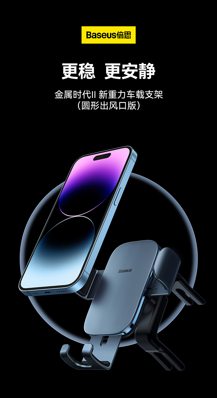 倍思 金属时代Ⅱ 新重力车载支架(圆形出风口版)
